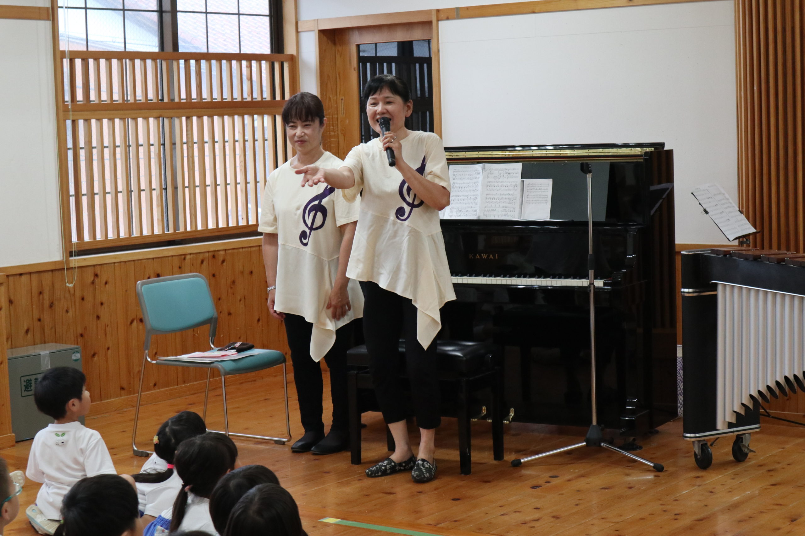 課外教室「音楽レッスン」でご指導いただいている白井史子先生、わかば第三幼稚園の「音楽レッスン」寺井久美子先生のお二人は普段からリンドンベルというグループを組んで音楽活動をしていらっしゃって尚且つ大の仲良しさんです。