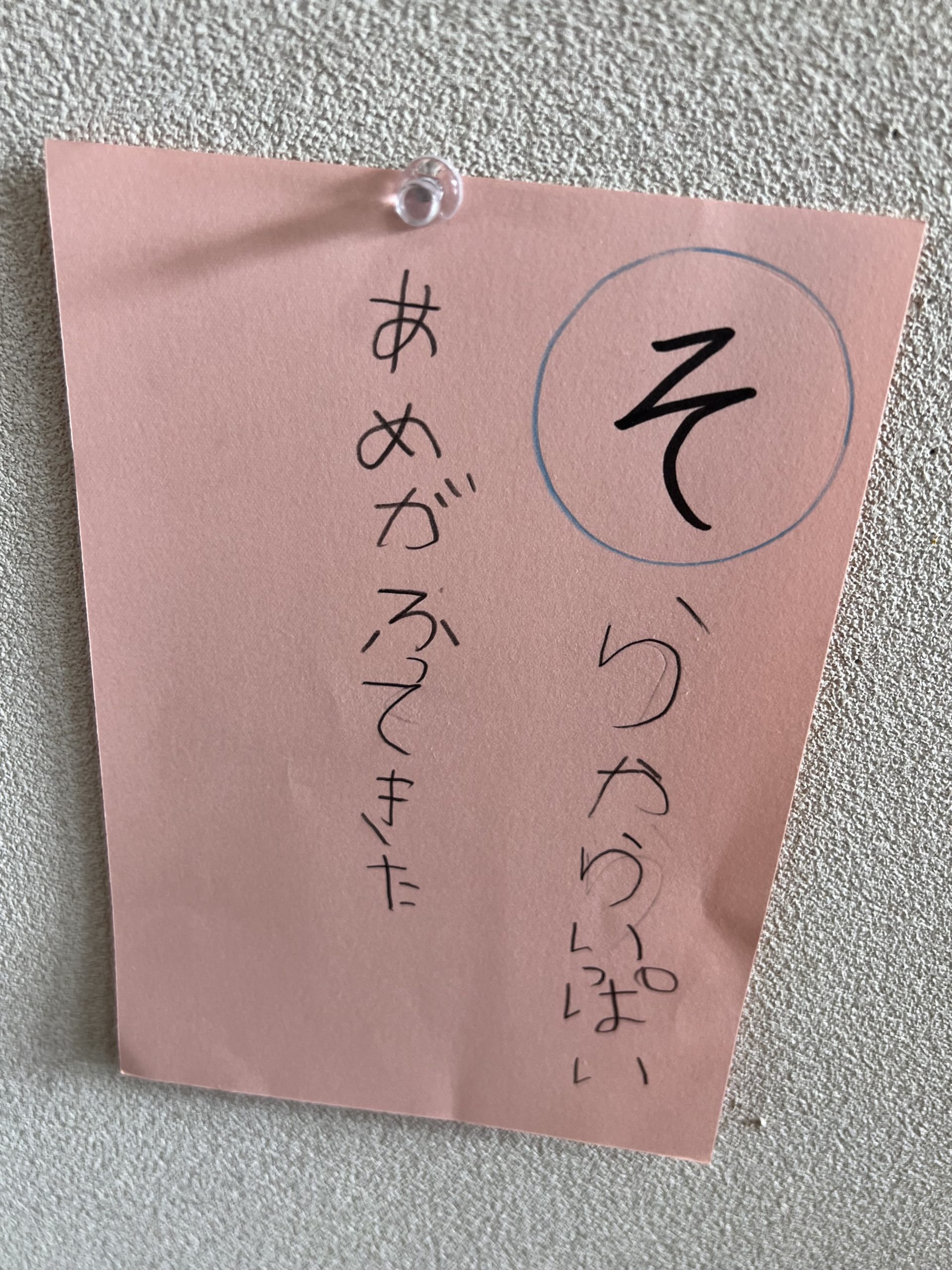 幼稚園にある2つの階段は年長さんが作った「かるたロード」になりました。