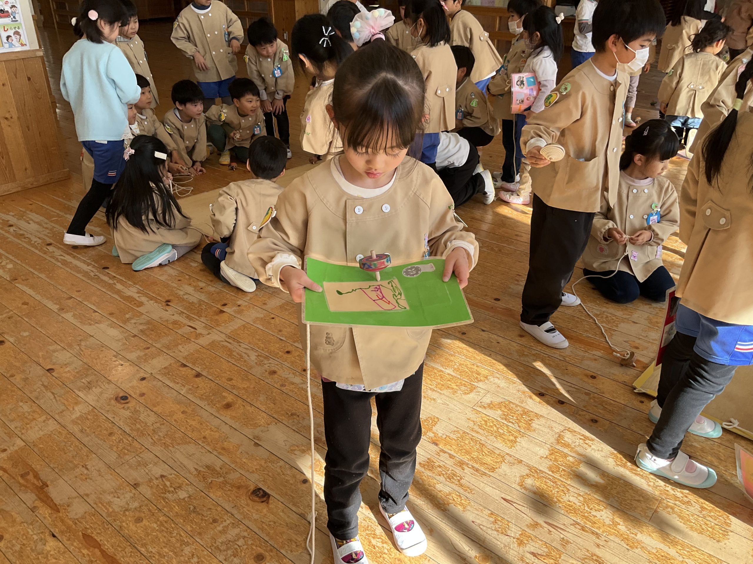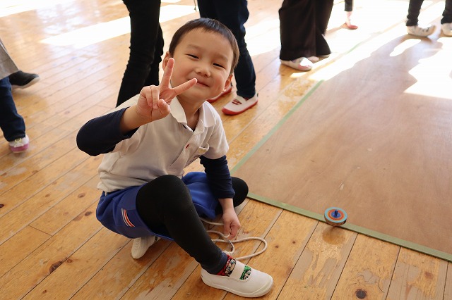 みんなでコマを回しながら勝ち残るゲームから強い子どもになってほしい」という願いが込められた縁起物としてお正月あそびの一つになったようです。
