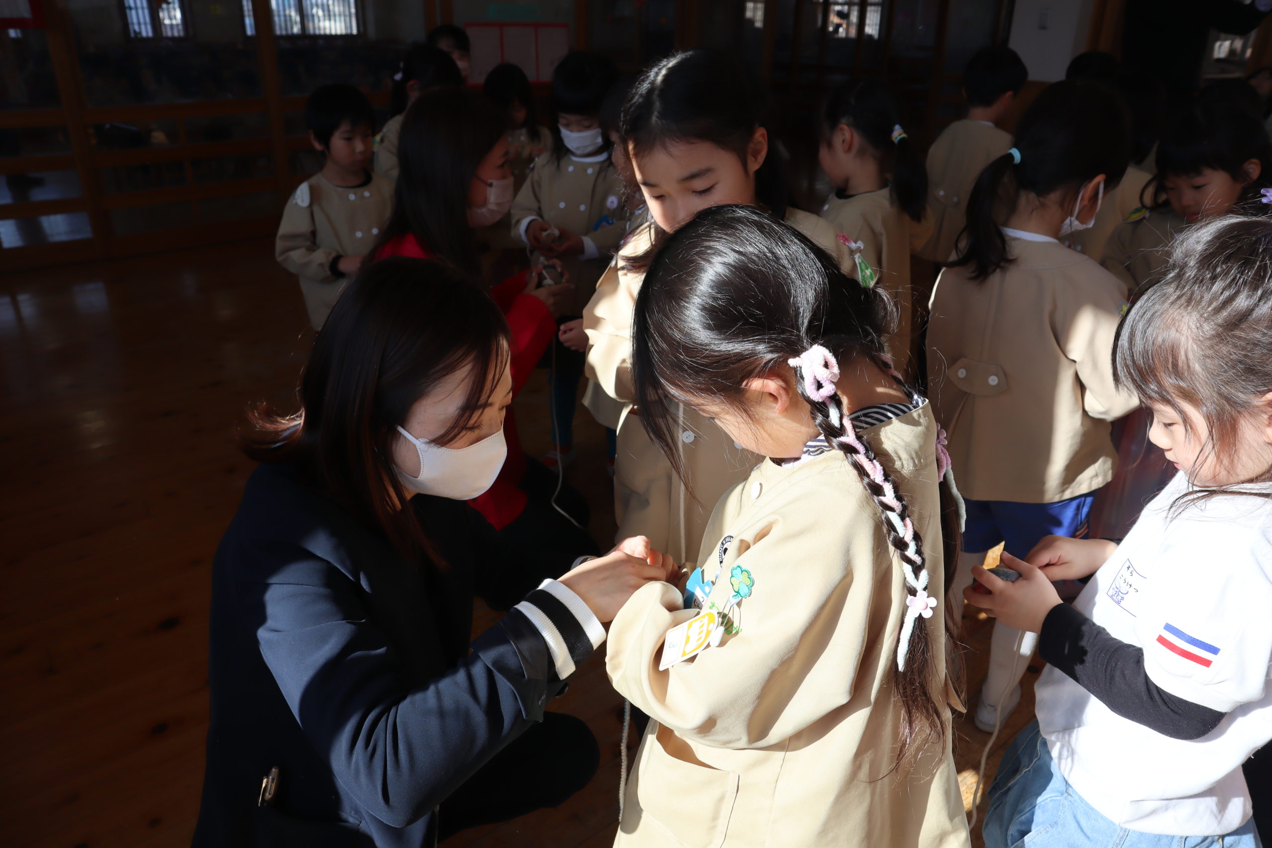 保護者会会長様でとうきくんのお父さん、まおちゃんのお父さん、かなめくんのお母さん、りほちゃんのお母さん、4名の名人です。とうきくんもかけつけてくれました。