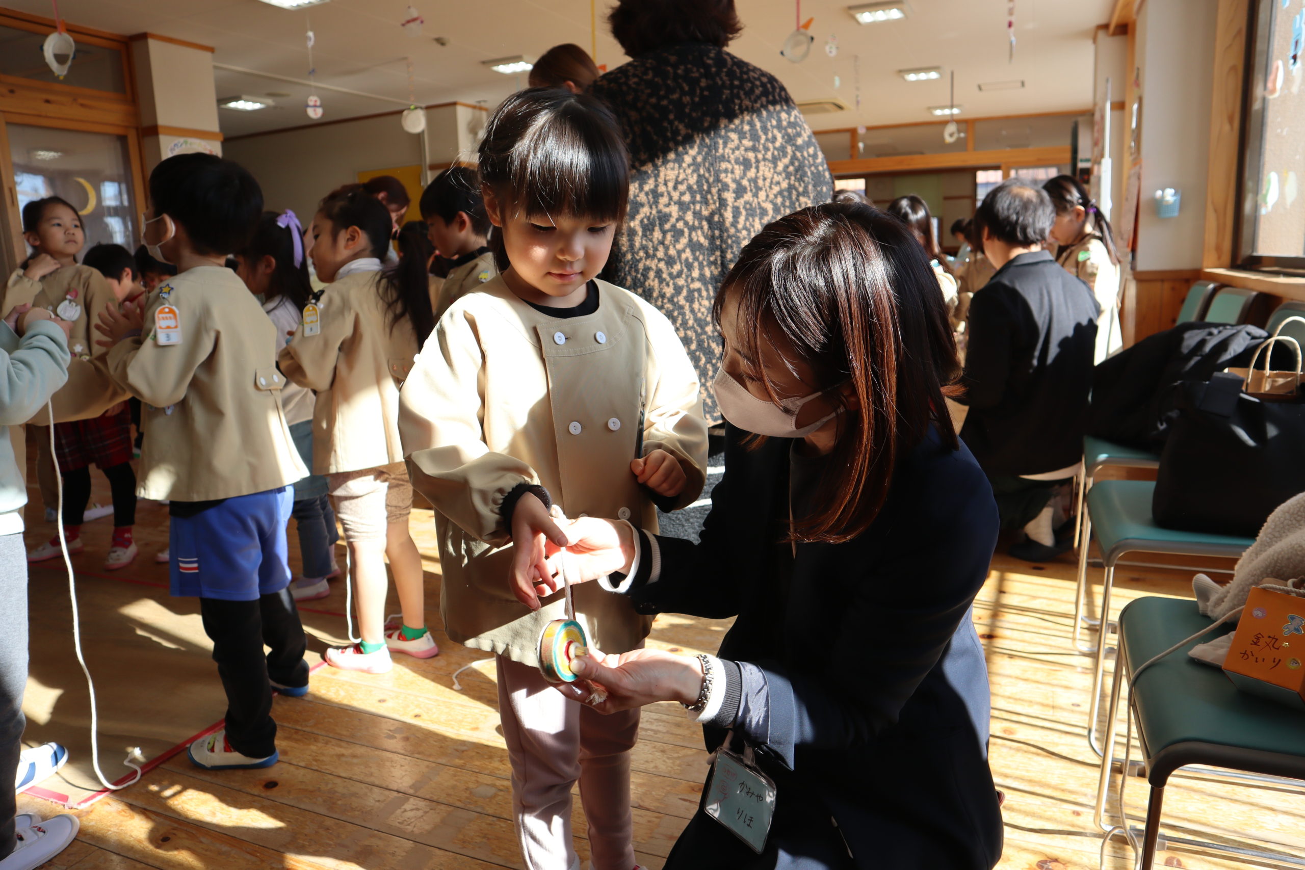 💞コマまわし名人のご指導。