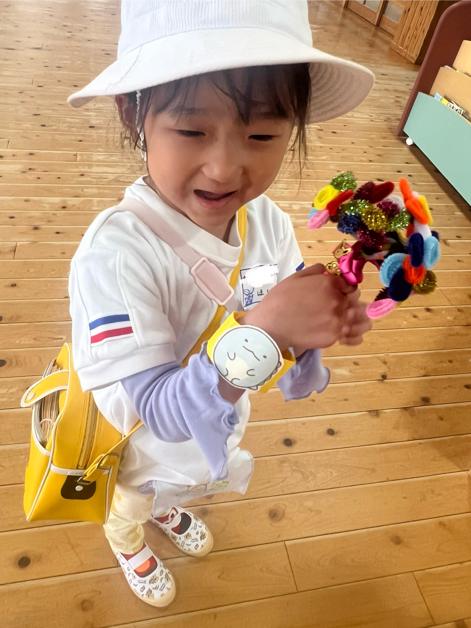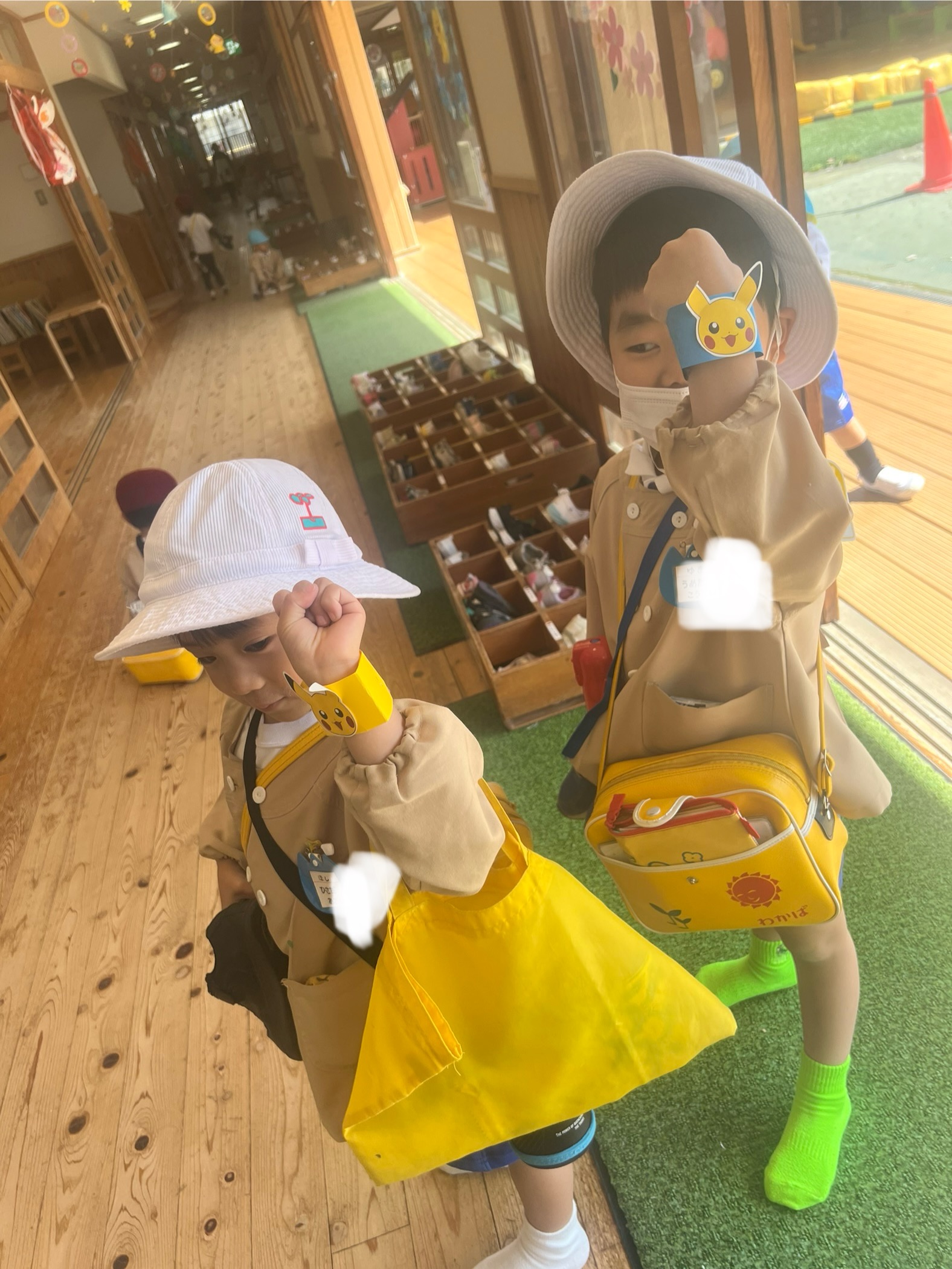 年長組さんは、強そうなリストバンドでかっこよく・・・・・登園です。