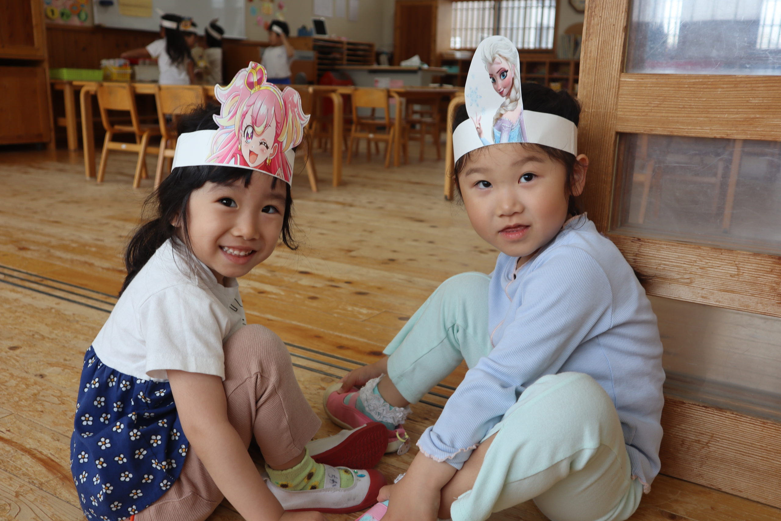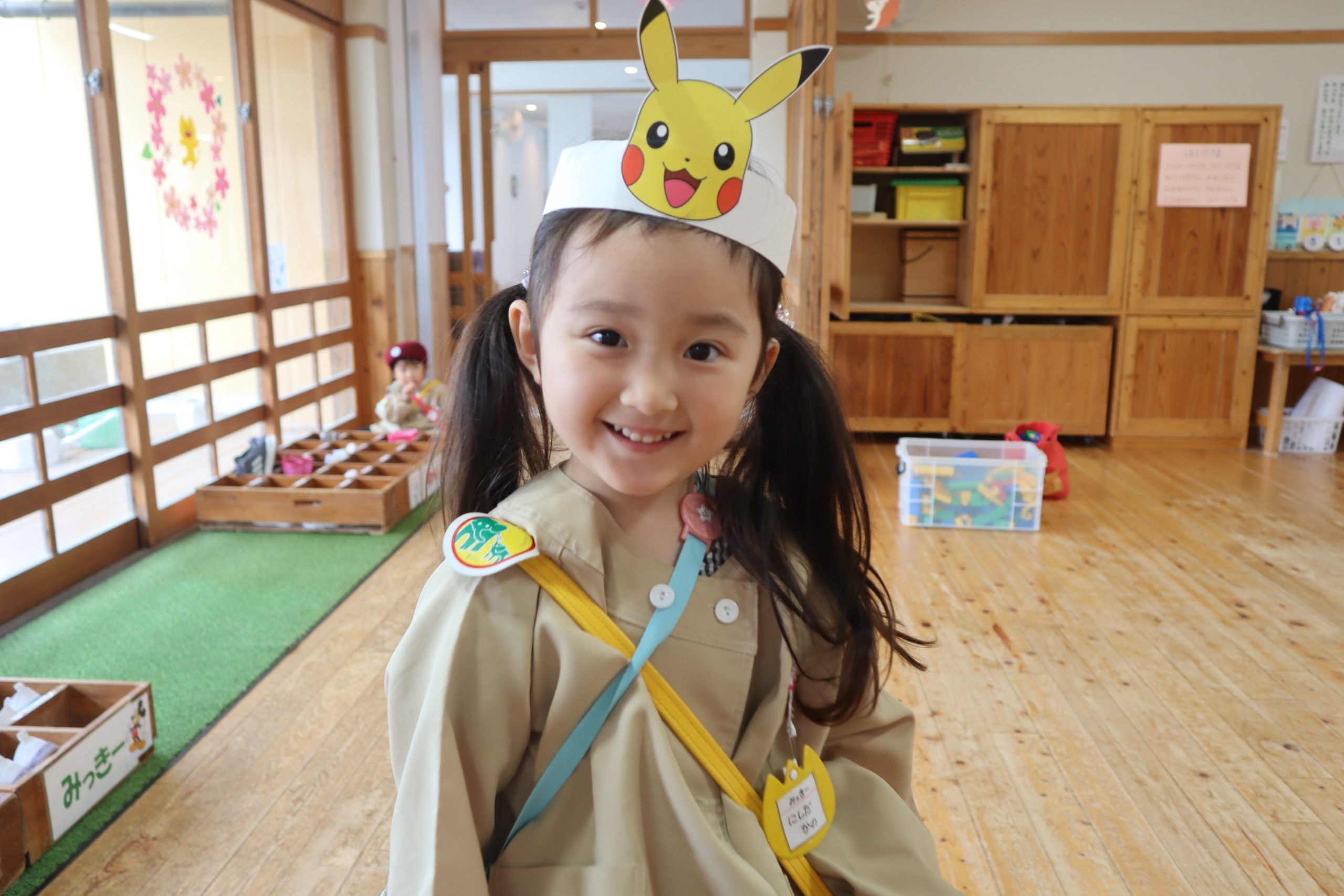 朝の登園から、キャラクターのお面を被って楽しみにしてきてくれました。