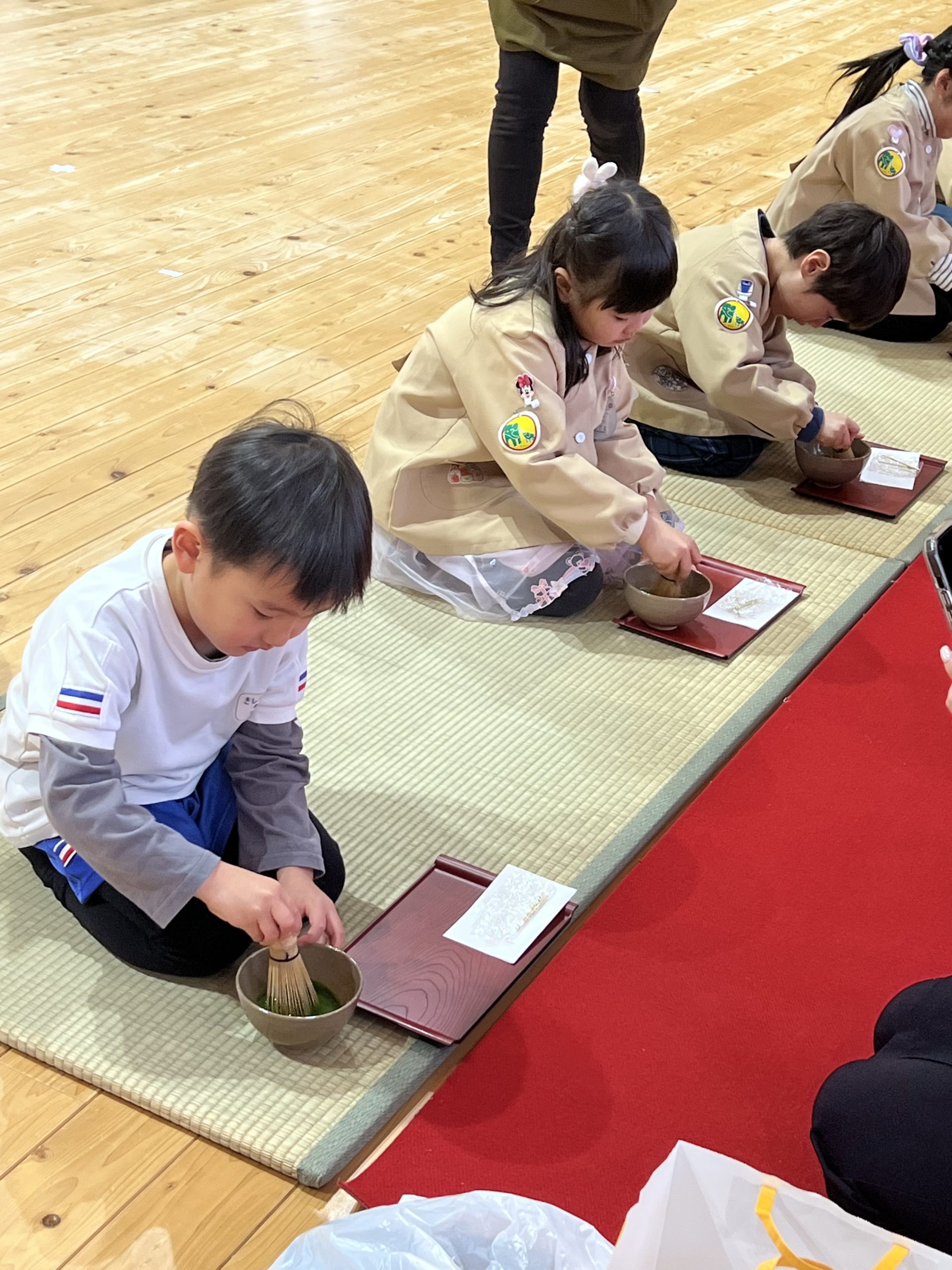 お茶会には、心を込めて子どもたちがお茶を点てました。