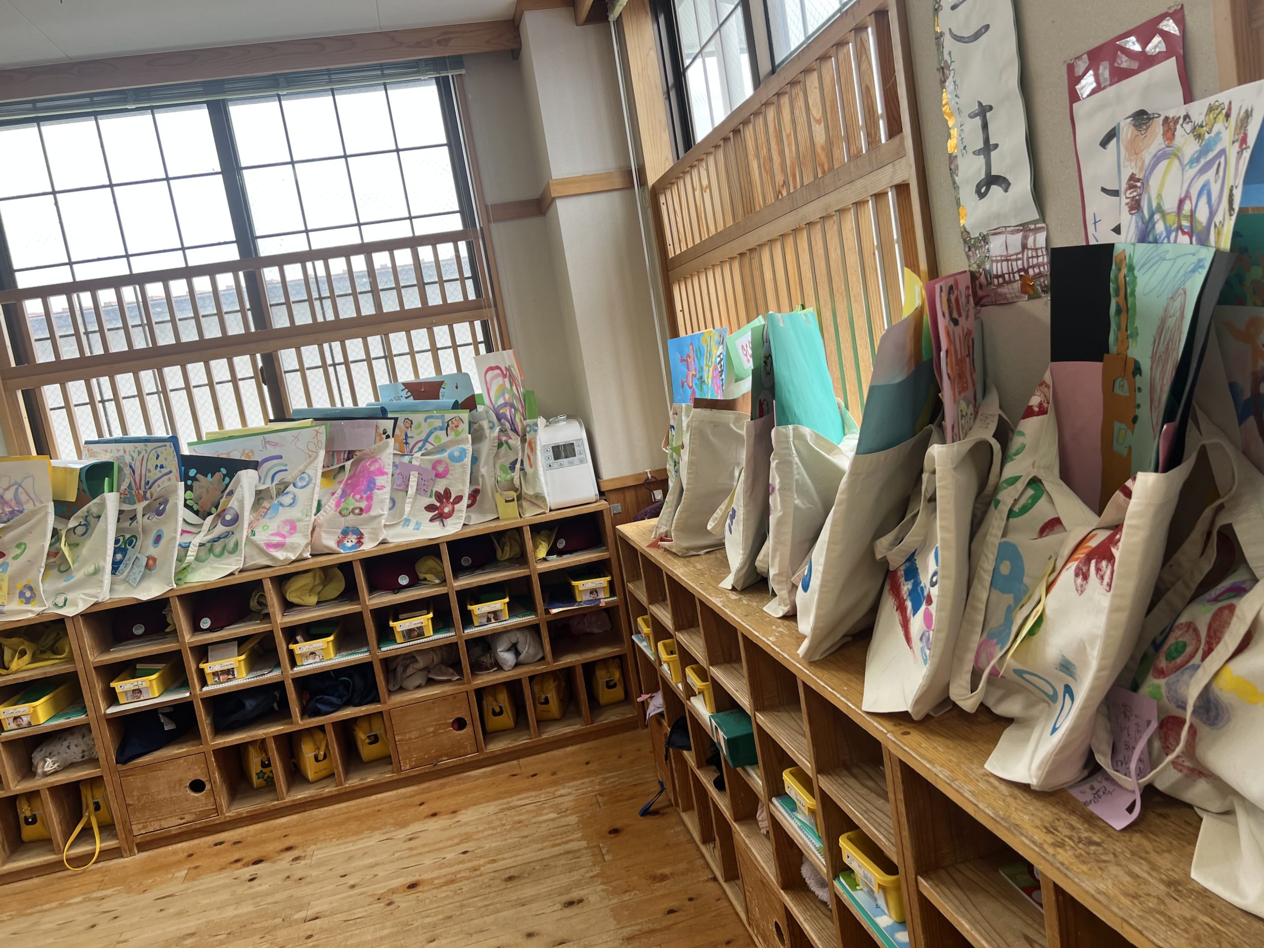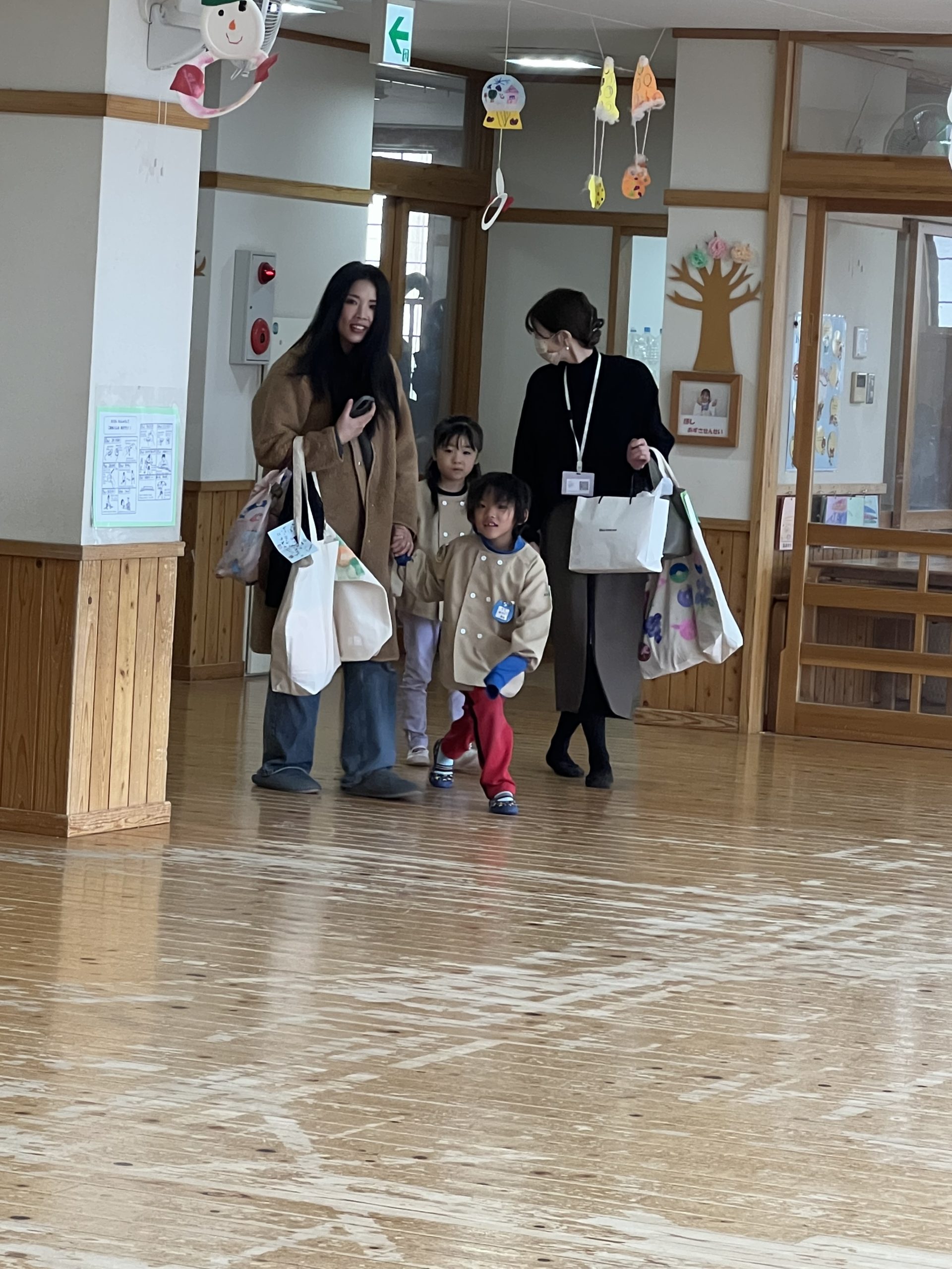 ホールからお部屋への移動にもお家の方と手をつないで、「今日は、最後までおもてなしだよ」とみんなの合言葉にして過ごしました。