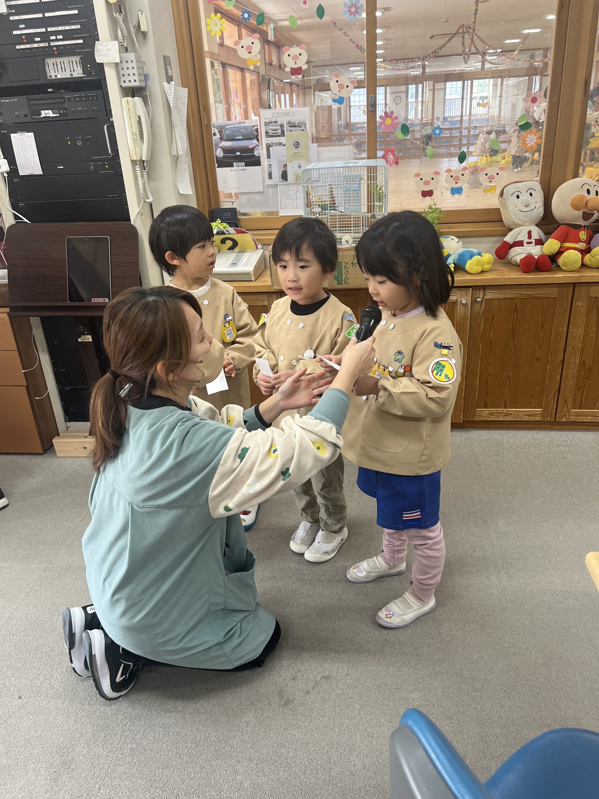 一生懸命に放送してくれる姿がとても初々しいですが、心は年長組さんのようです。