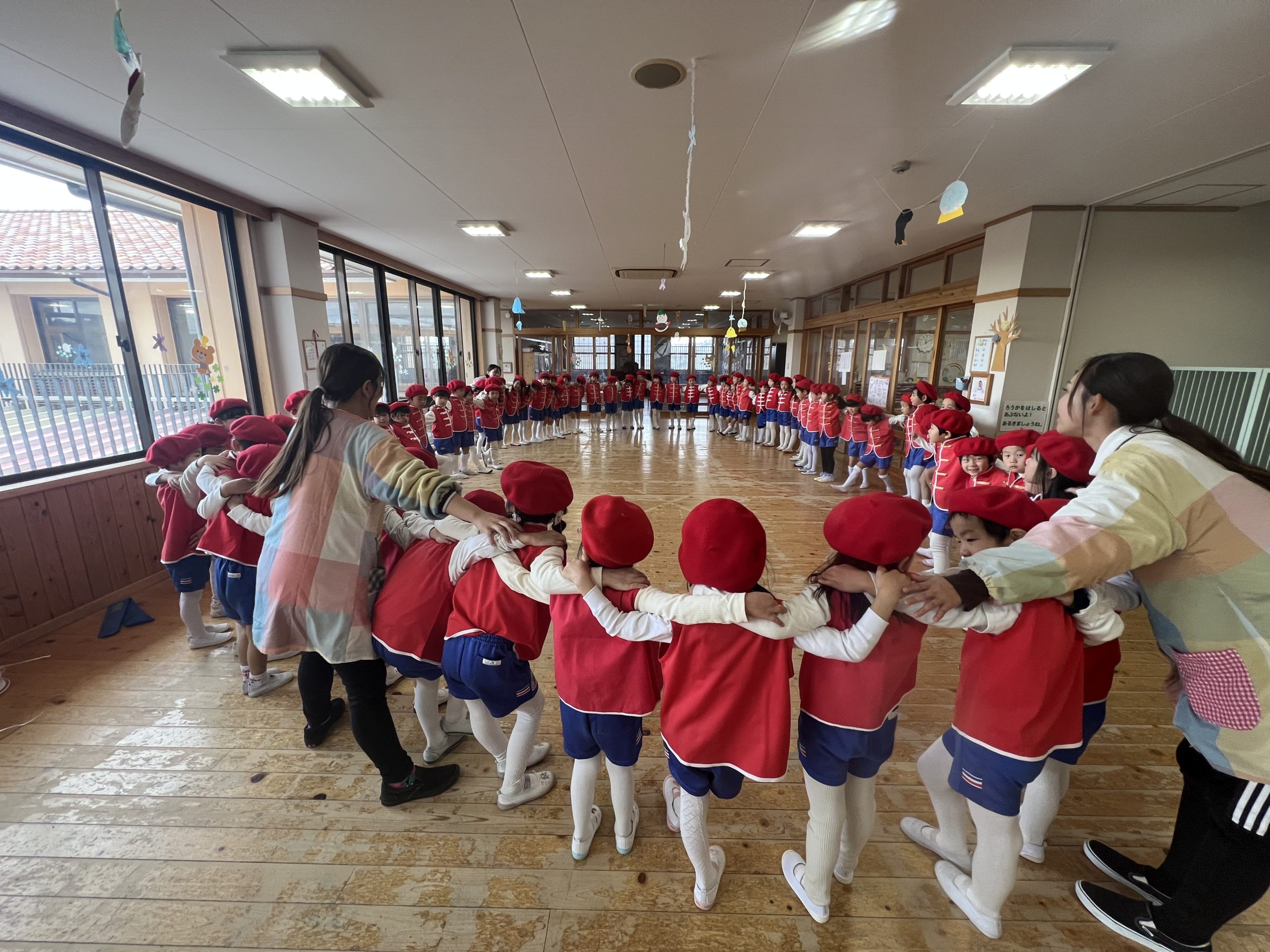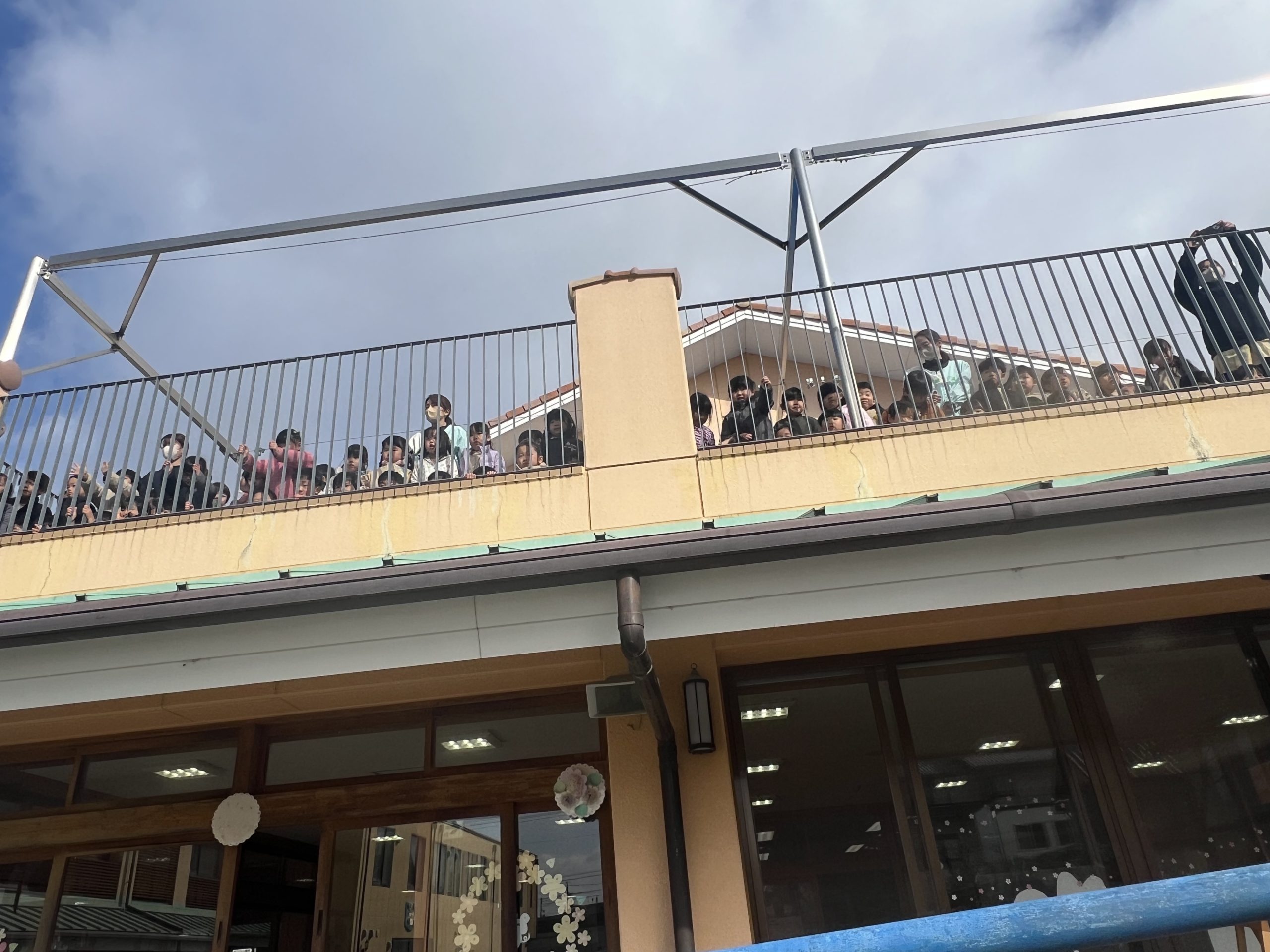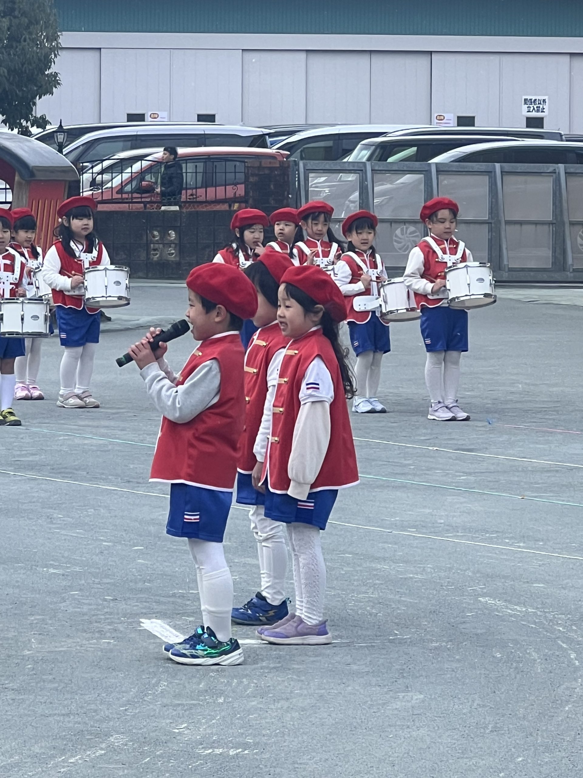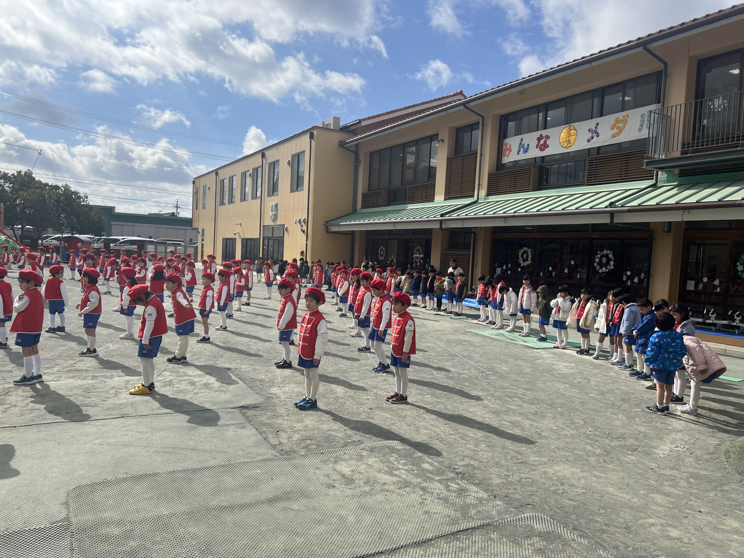 年長さんの雄姿が年少組や年中組の子どもたちの心にも残りました。そして、演奏の中盤になるとお日様が顔を出し、みんなが応援してくれているように感じました。
