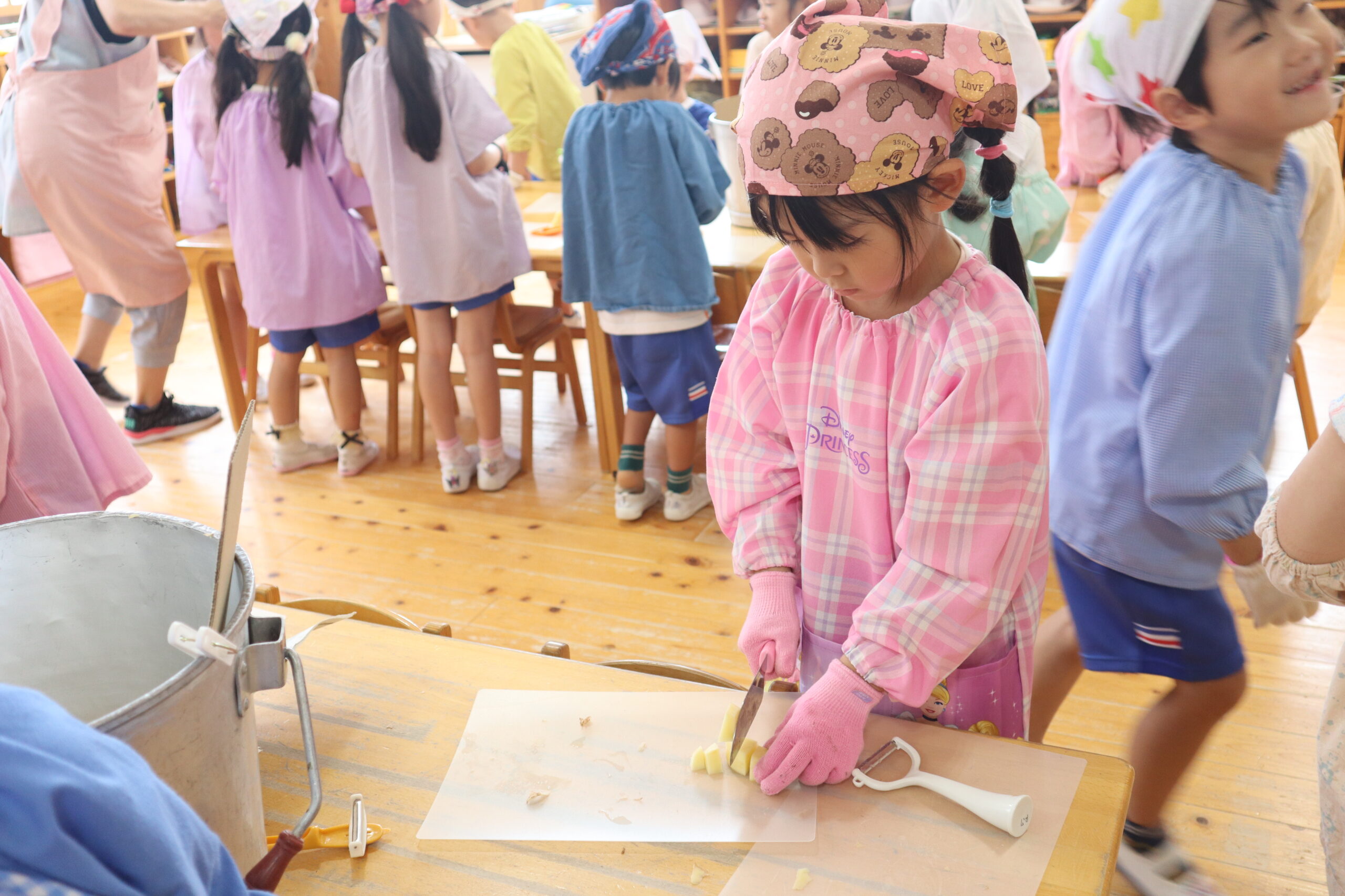 夜にいただくカレーライスの玉ねぎは、幼稚園で育てて収穫した玉ねぎです。