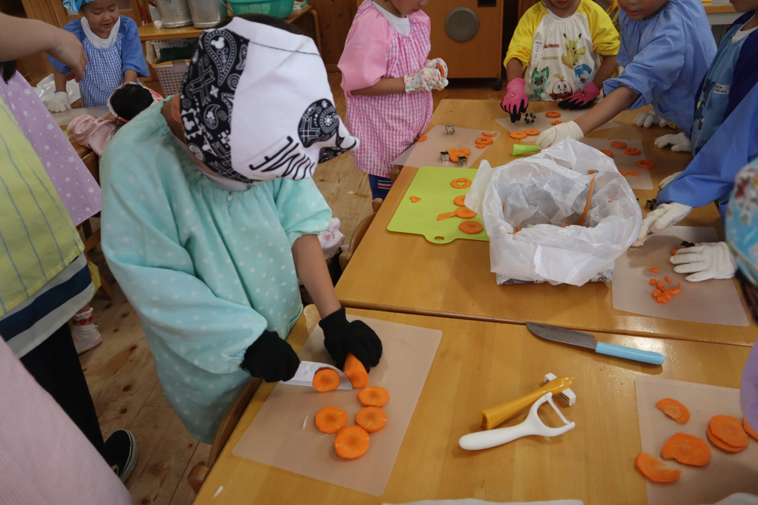 材料は自分たちでカットして、調理員さんに作っていただきます。