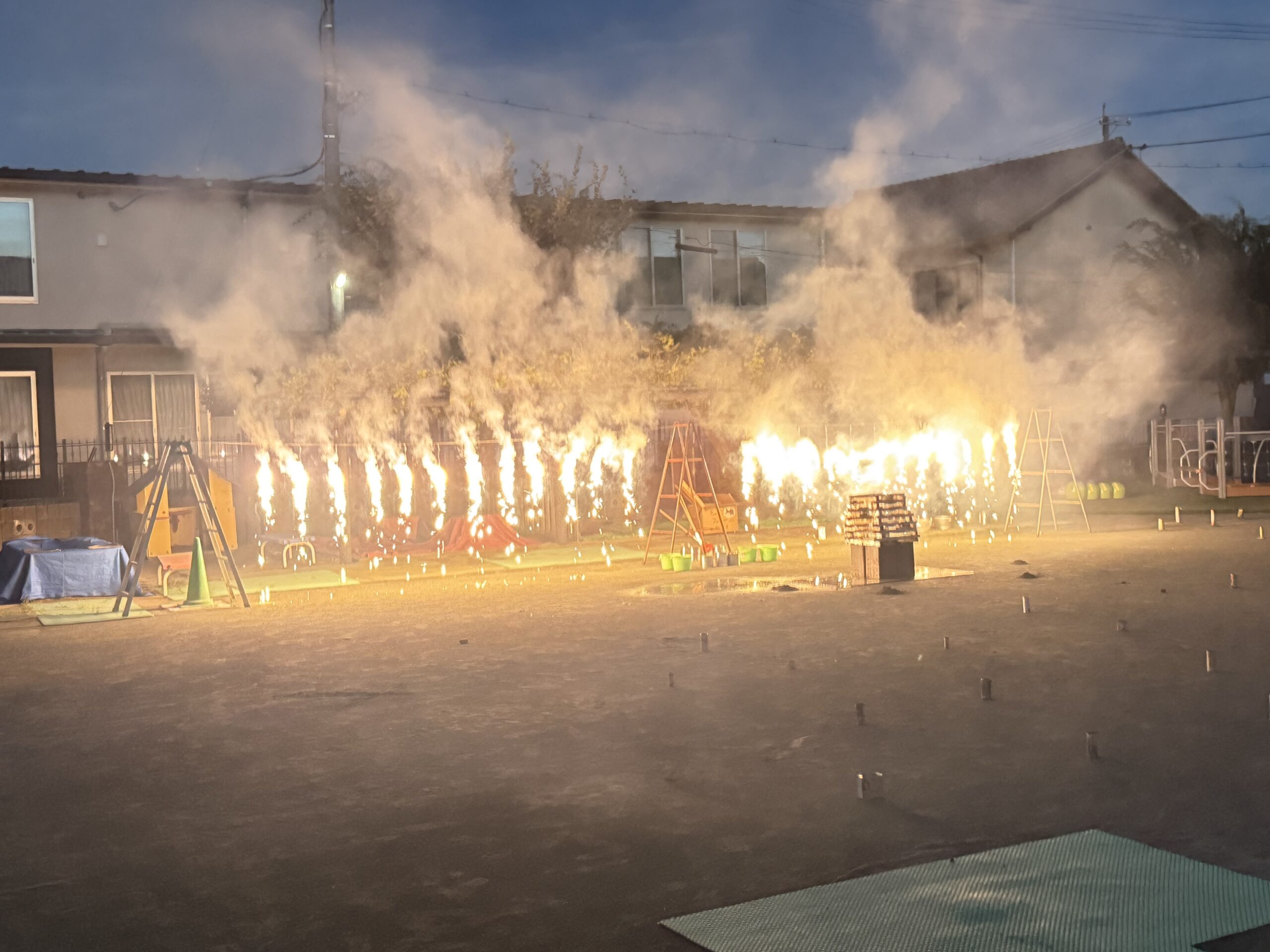 キャンプファイヤーを囲んで学んだ大切な火、ファイヤーダンス、そして幼稚園のお空を彩った花火・・・・・。