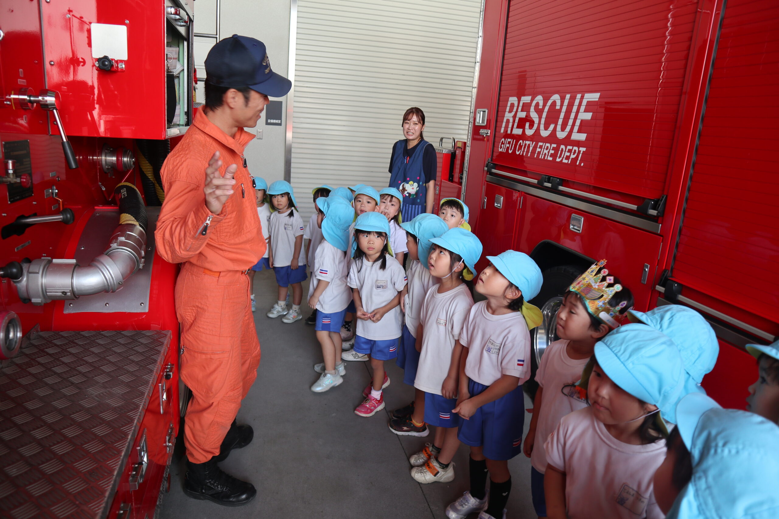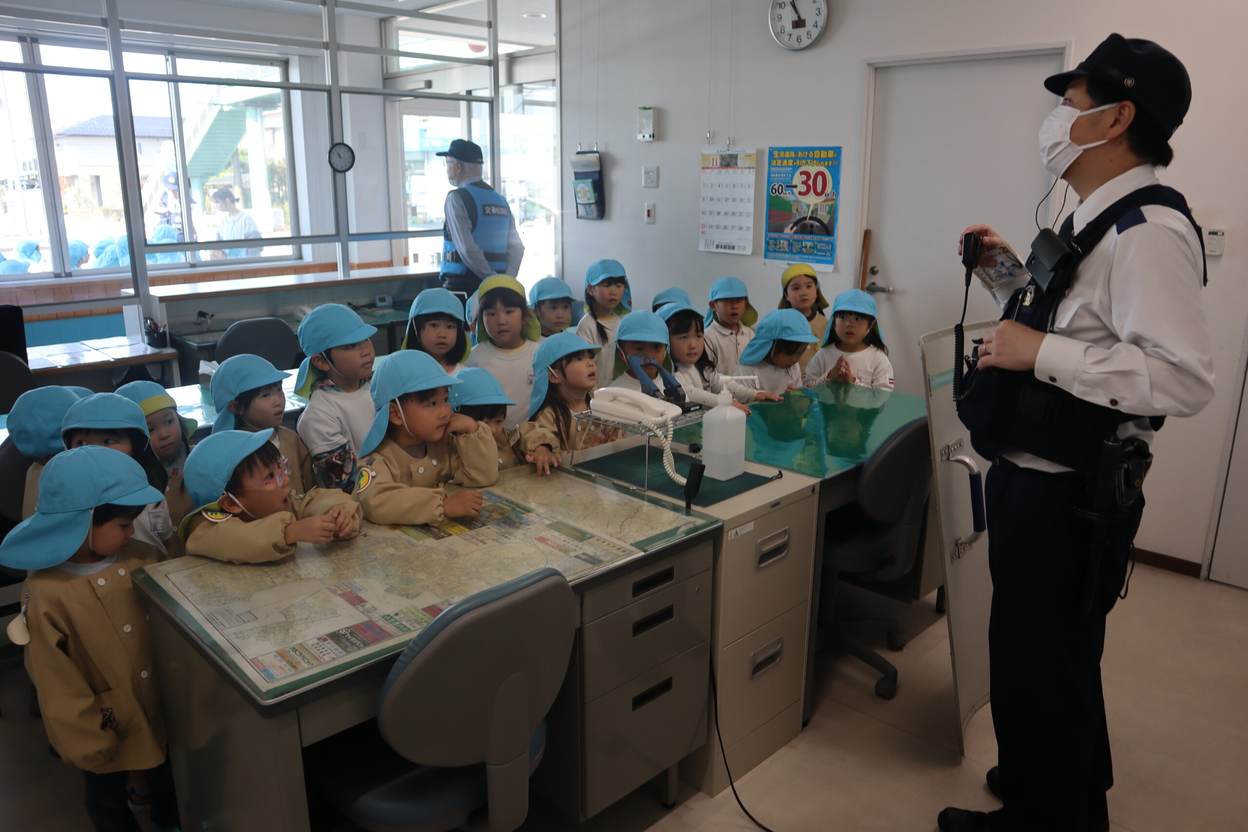 年中組のみなさんは、南地区管轄の「南消防署」や幼稚園の近くにある「城東通交番」。