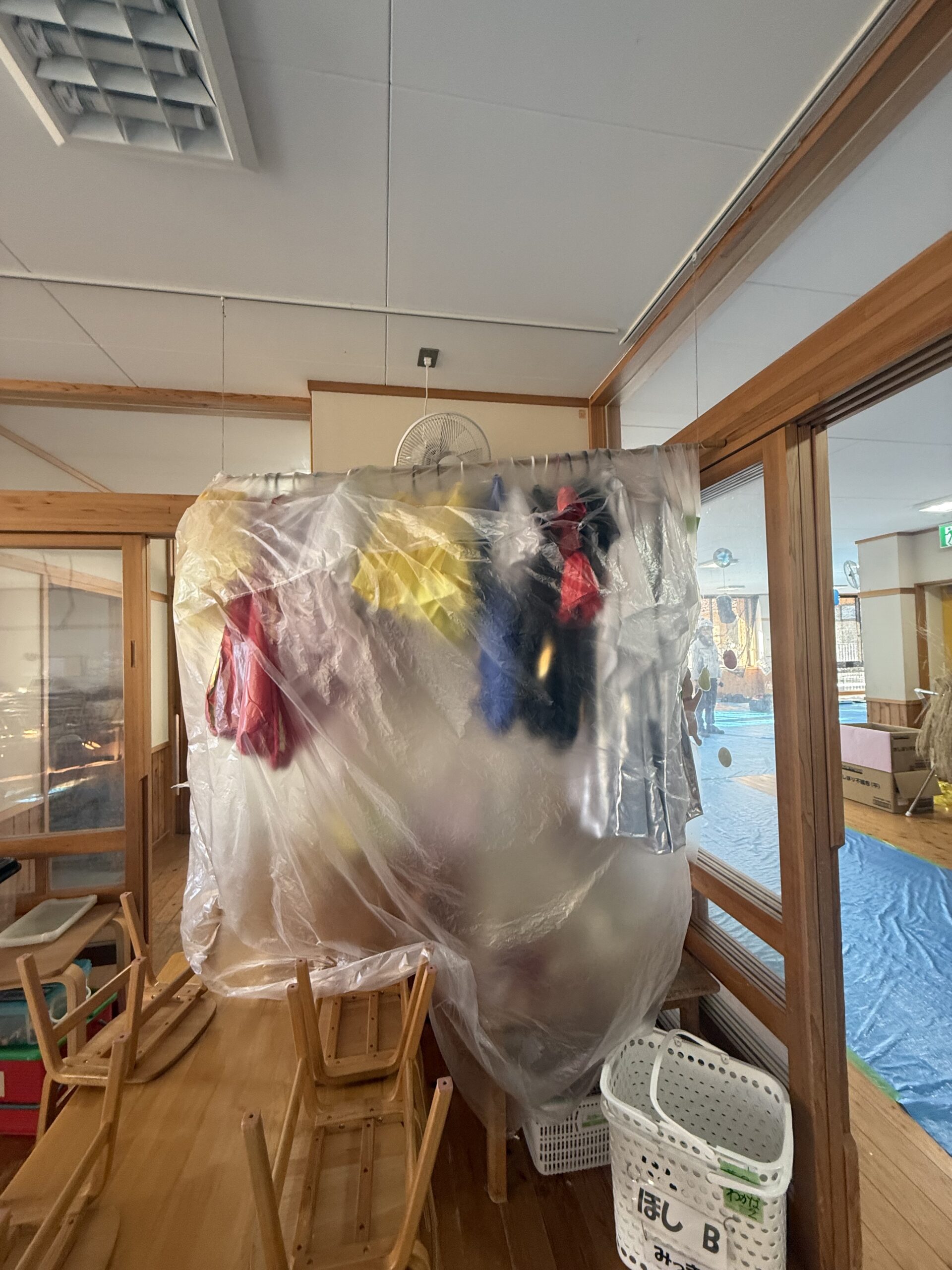 大変大掛かりな工事になりますが、大切な衣装やロッカーは養生されて安心です。