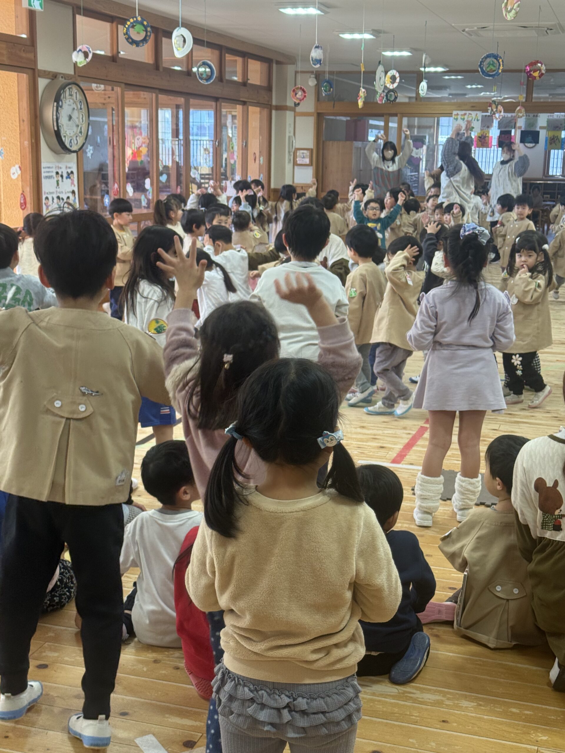 「えんちょうせんせい、きょうかわいいね!」と、年中組の子どもたちが舞台袖で言ってくれました。