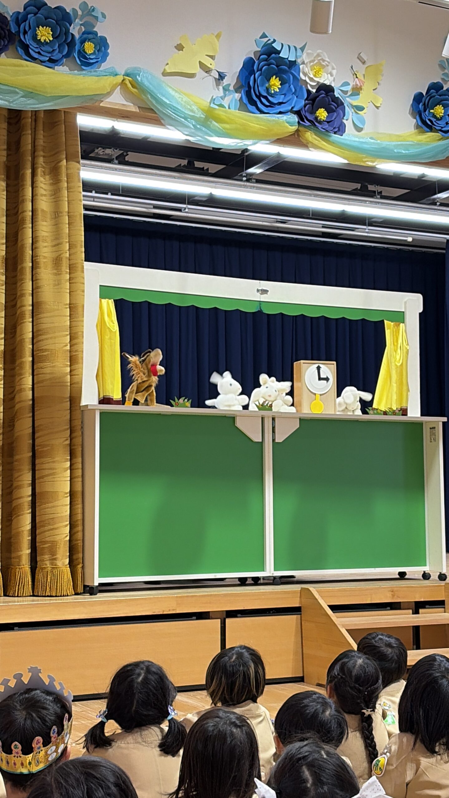 私と3人の教務課の先生で人形劇「七ひきのこやぎ」で今年の締めくくりをしました。