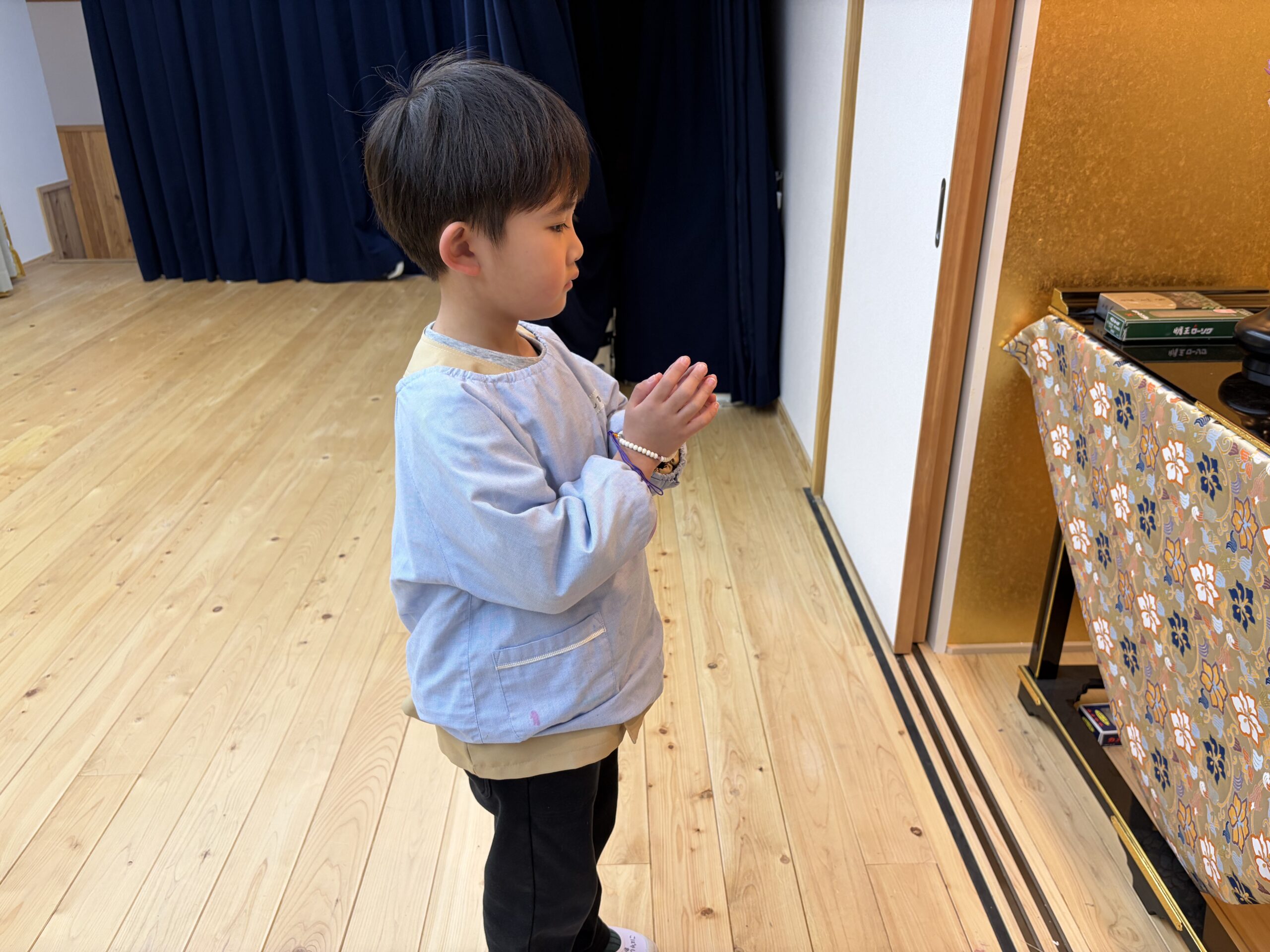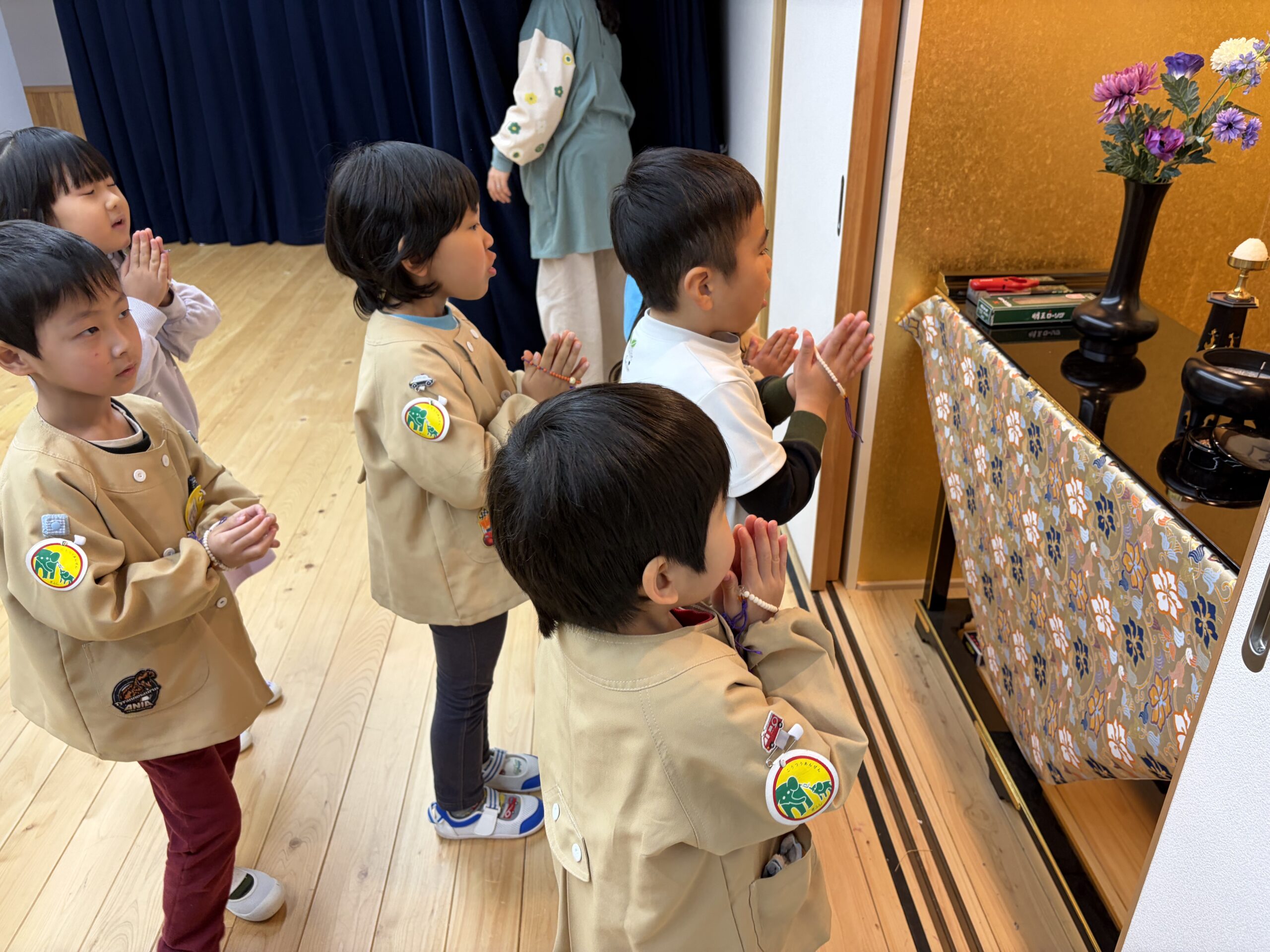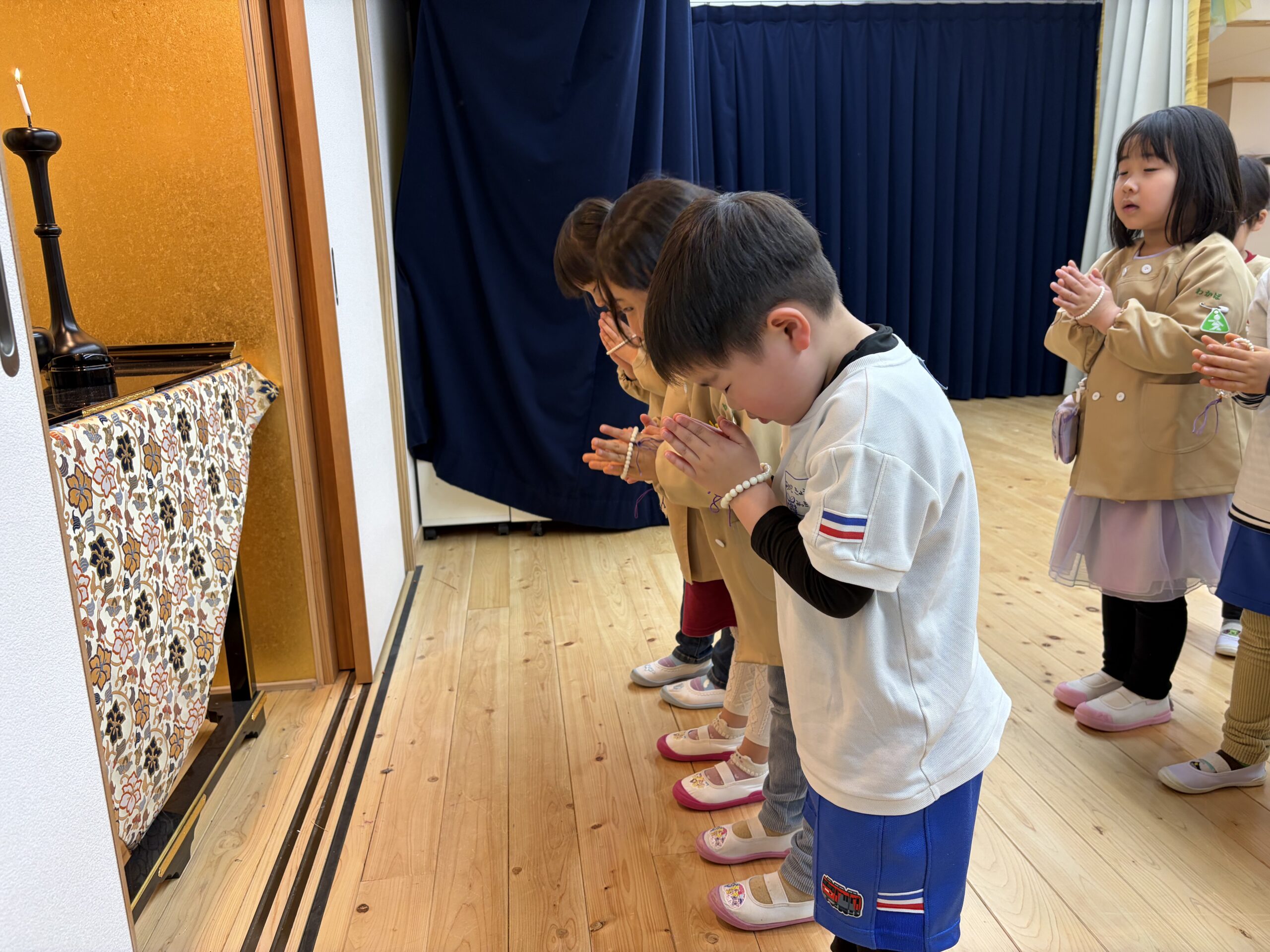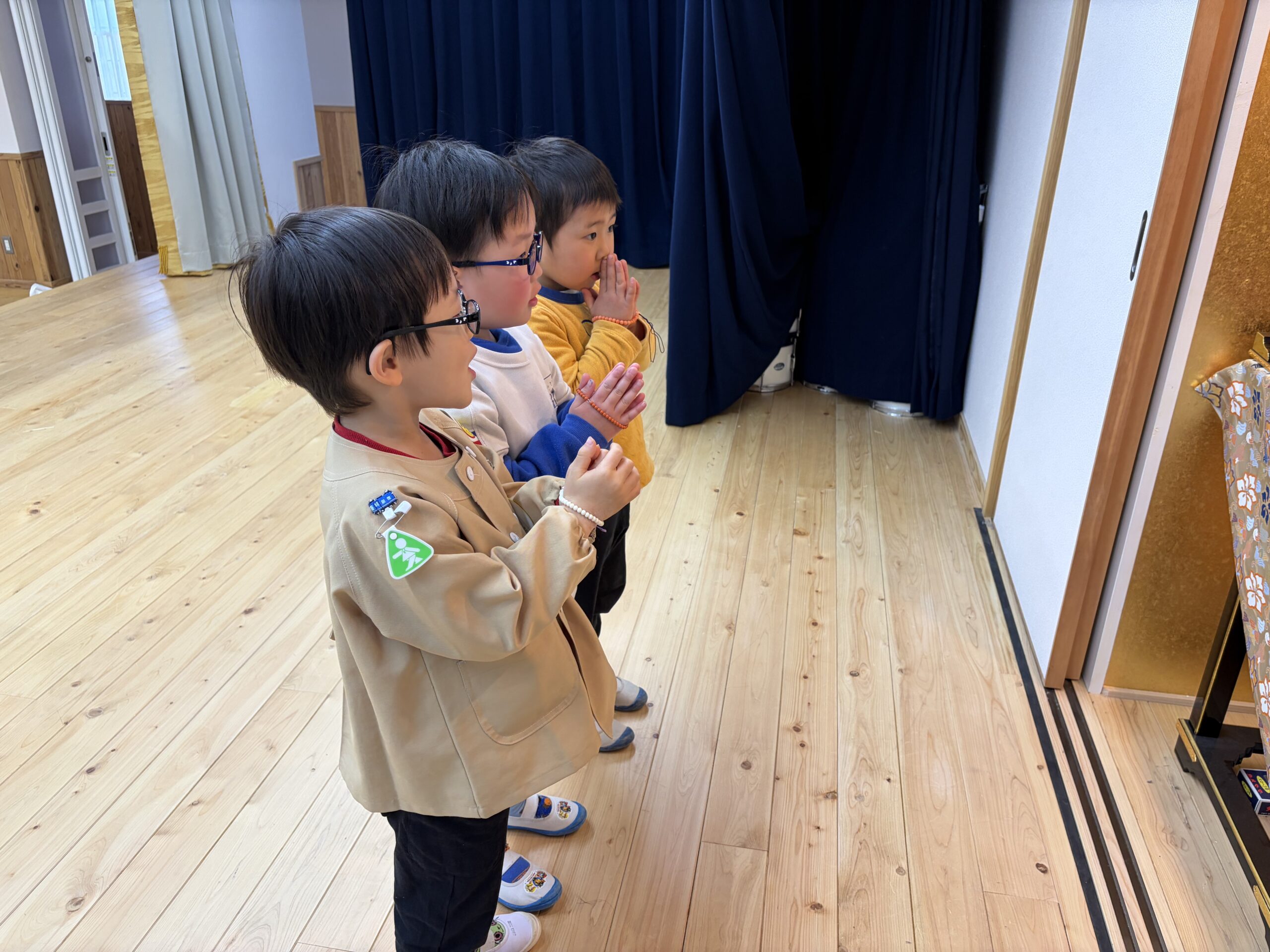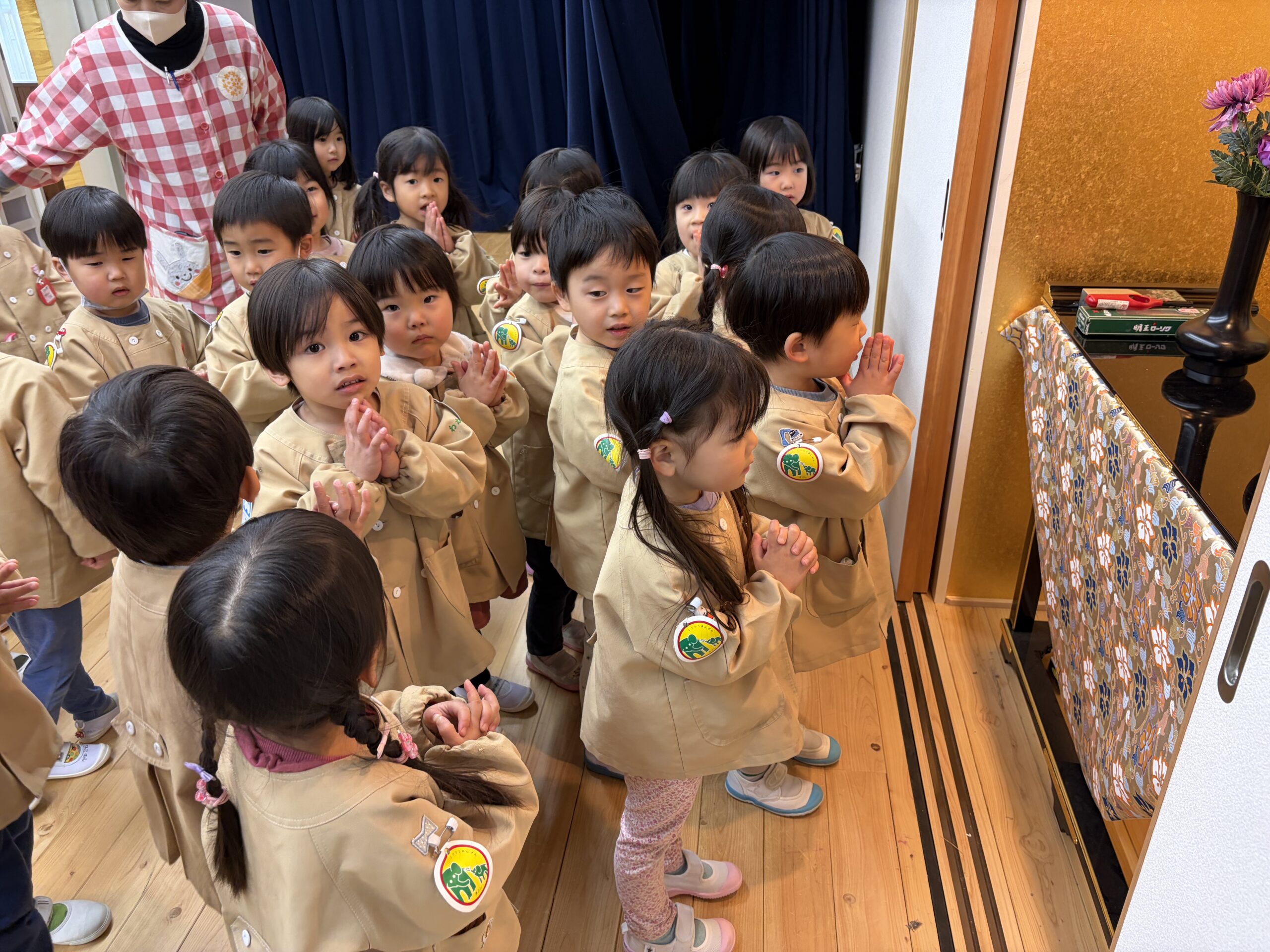 年少組のみなさんは、保育時間に先生と一緒におまいりしてくれました。