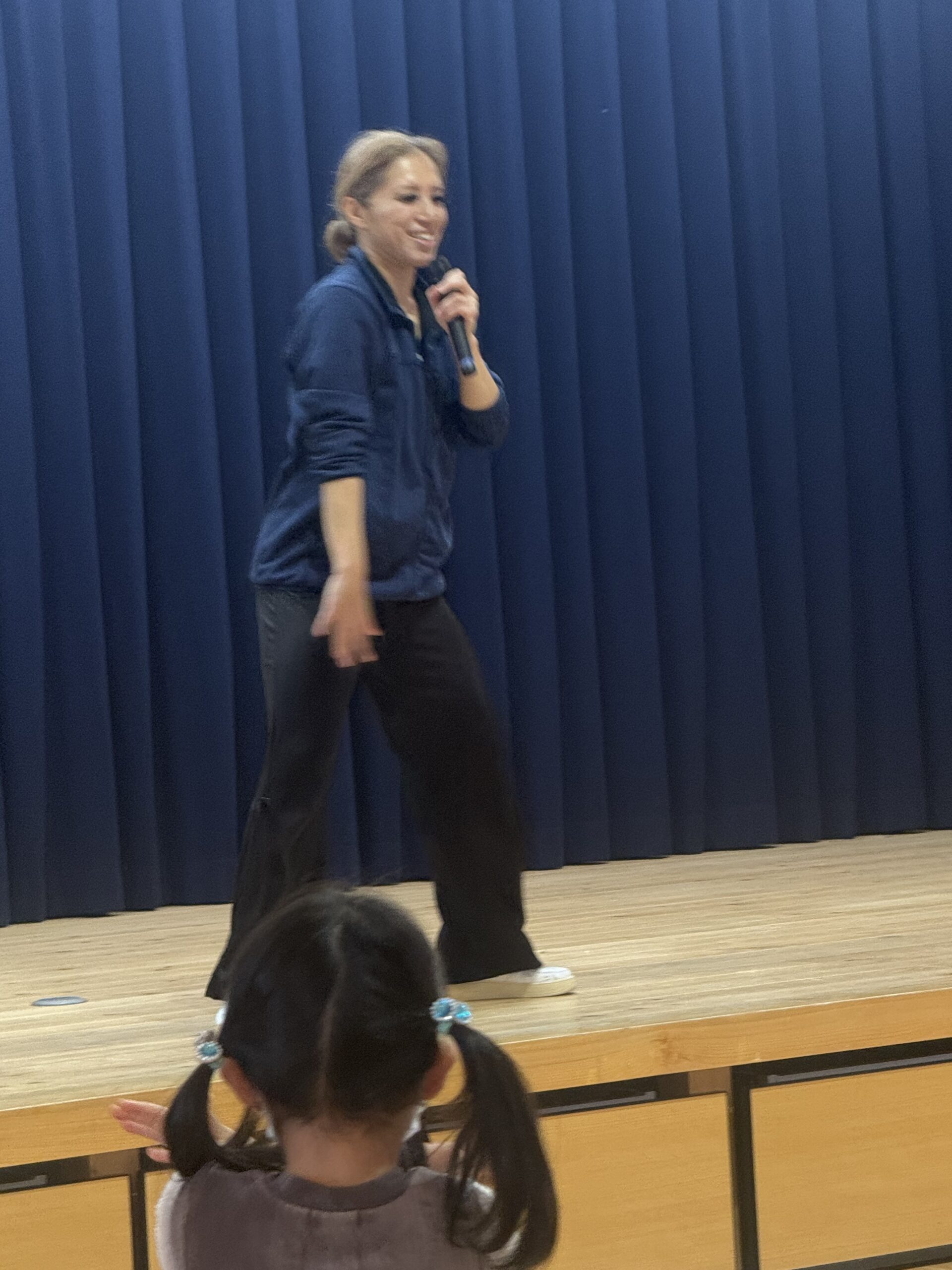 「身体を動かす➡柔軟運動をする➡ダンスをするの三段階をみんなでしましょうね」
