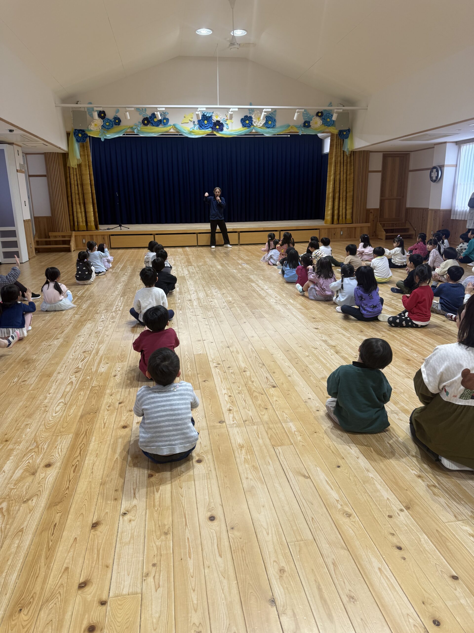 先生が一言おはなしされると、子どもたちのおしゃべりで賑わう年中組のみなさんに、