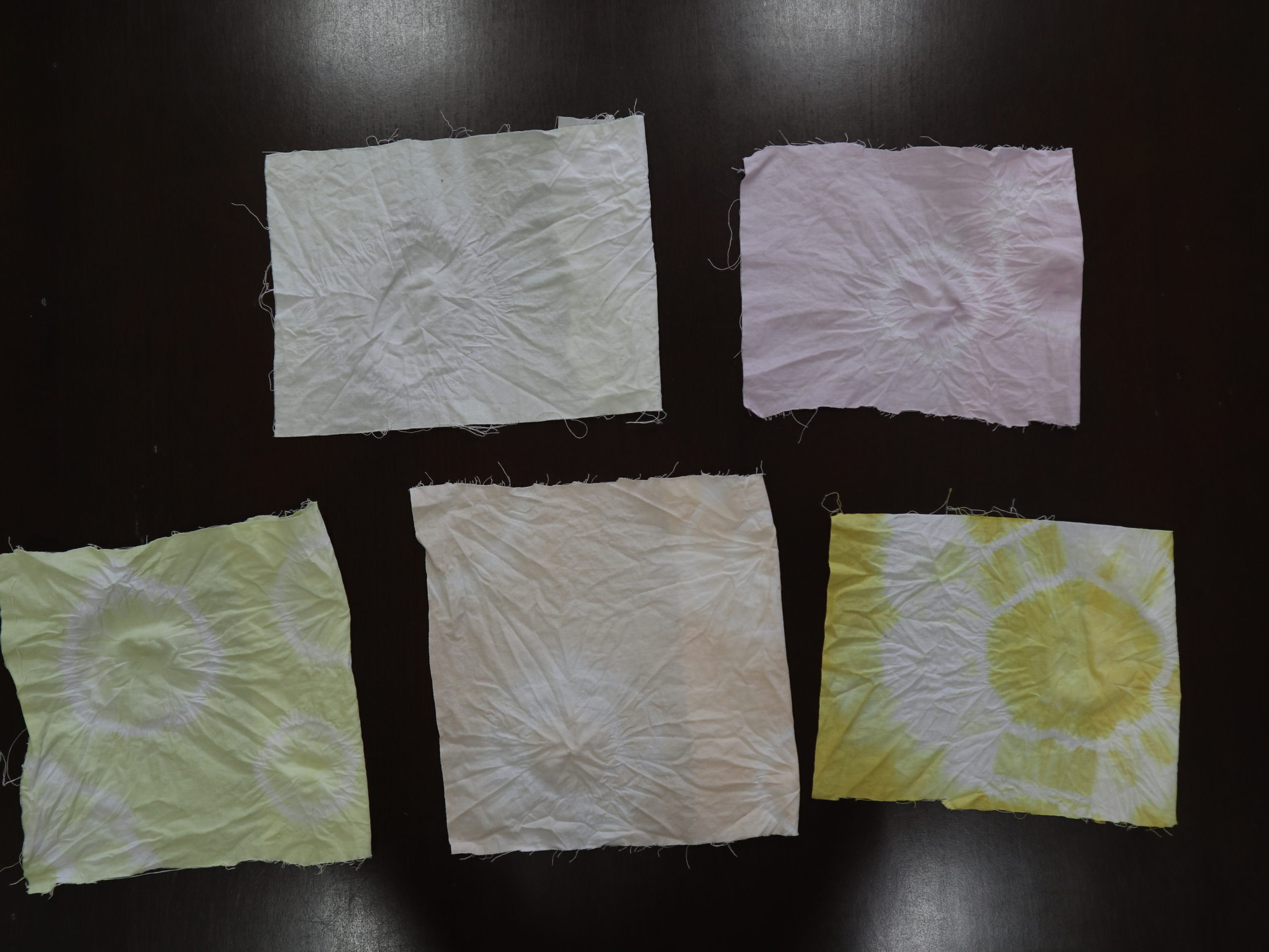 ビニール袋でできた色水をペットボトルに移して・・・・。みんなの登園が揃ったら、魔法の液体を入れていろいろな色を作って・・・「色水にレモンをたすとどうなる?」「いろいろ試してみようね」と。みんなが登園できるようになった時、草木染のできることを楽しみにしています。※お休みされている子の分は冷凍保存をしてありますから、登園されてから一緒にやりましょうね。もっと違う色も出そうかと、下記は先生が準備の為に染めてみましたよ。すべてお野菜ですが、何のお野菜か分かりますか? レッツ!シンキングです。