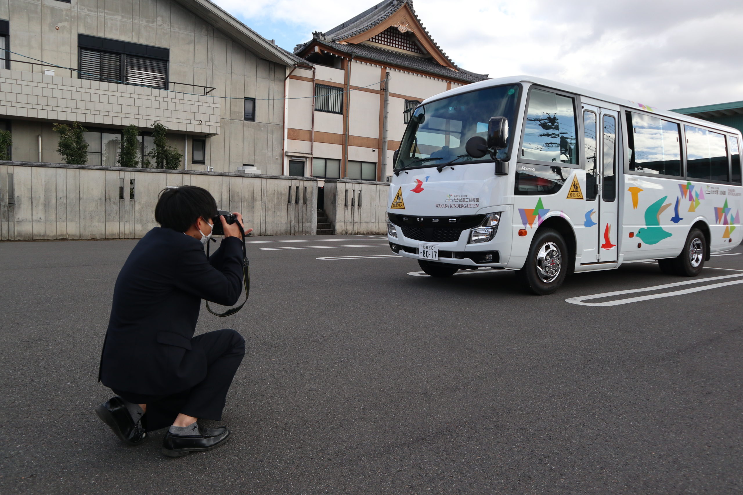 「バスが大好きで色々なバスをカメラに撮っています。幼稚園のバスを撮らせていただけませんか。」突然のお電話をいただきました。お話を聞いていく中で、なんと現在高校3年生でしかも卒園生「とりバスで通った幼稚園のバス、その新しくなったバスを撮りたい」。そんな訳で昨日カメラを持って来てくれました。丁度年長組の子どもたちが衣装を着けて劇のリハーサル中、良い時と思い、見ていただくことにしました。
