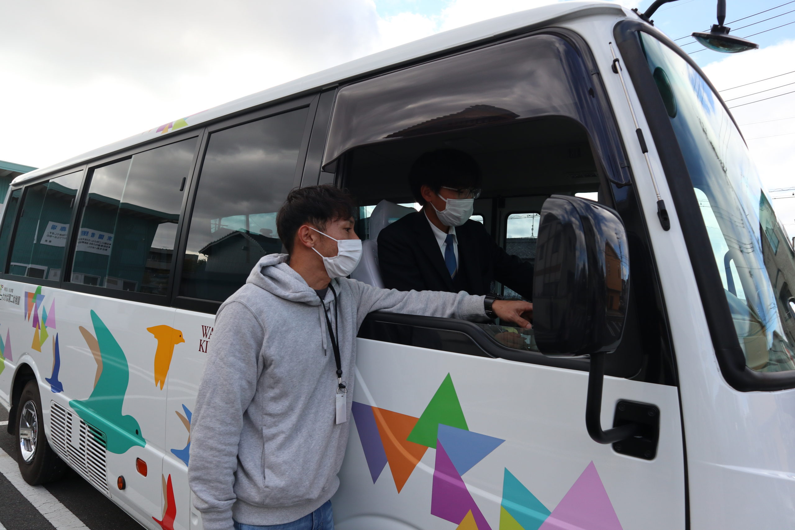 幼稚園バスに乗せてもらっていた彼が今日は運転席・・・・ふ・し・ぎな気分ですよね。