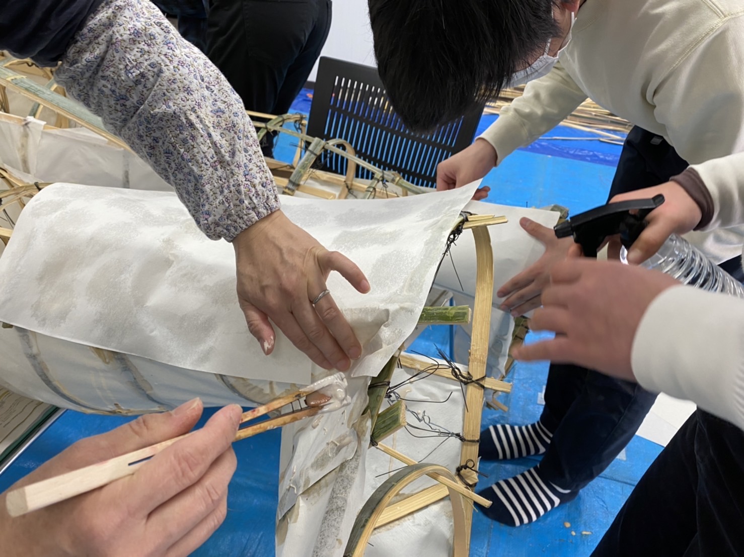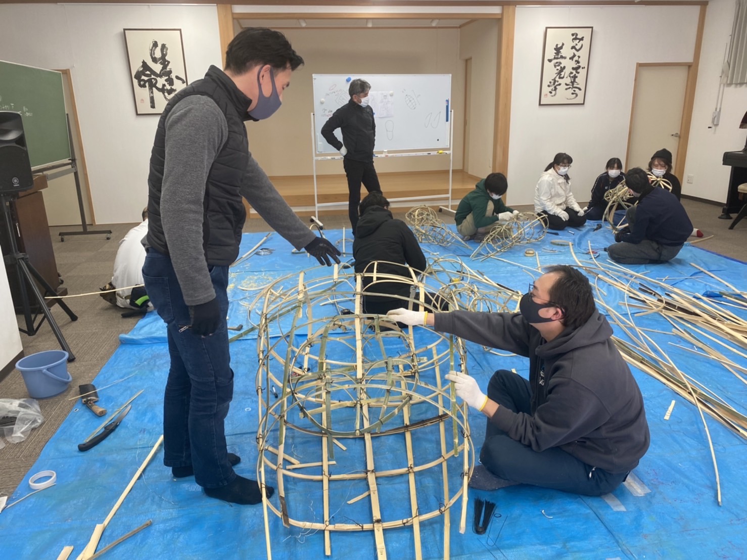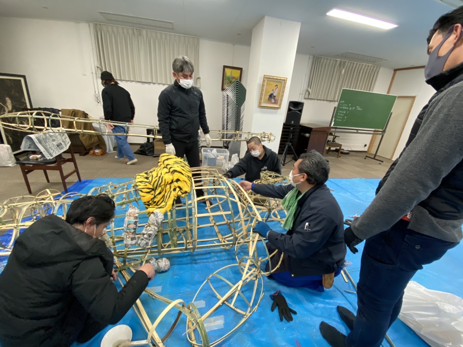 善光寺さんの鬼は、有志の方が集まって長良の竹と美濃和紙から骨組みを作り、3日間かけて作られているそうです。