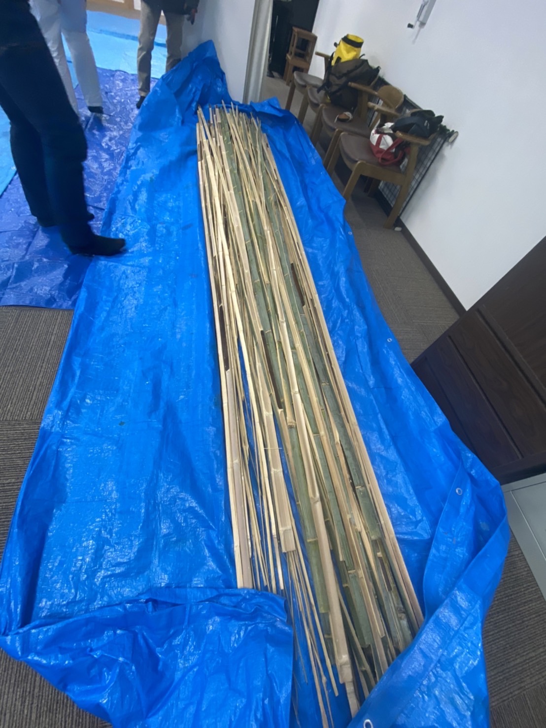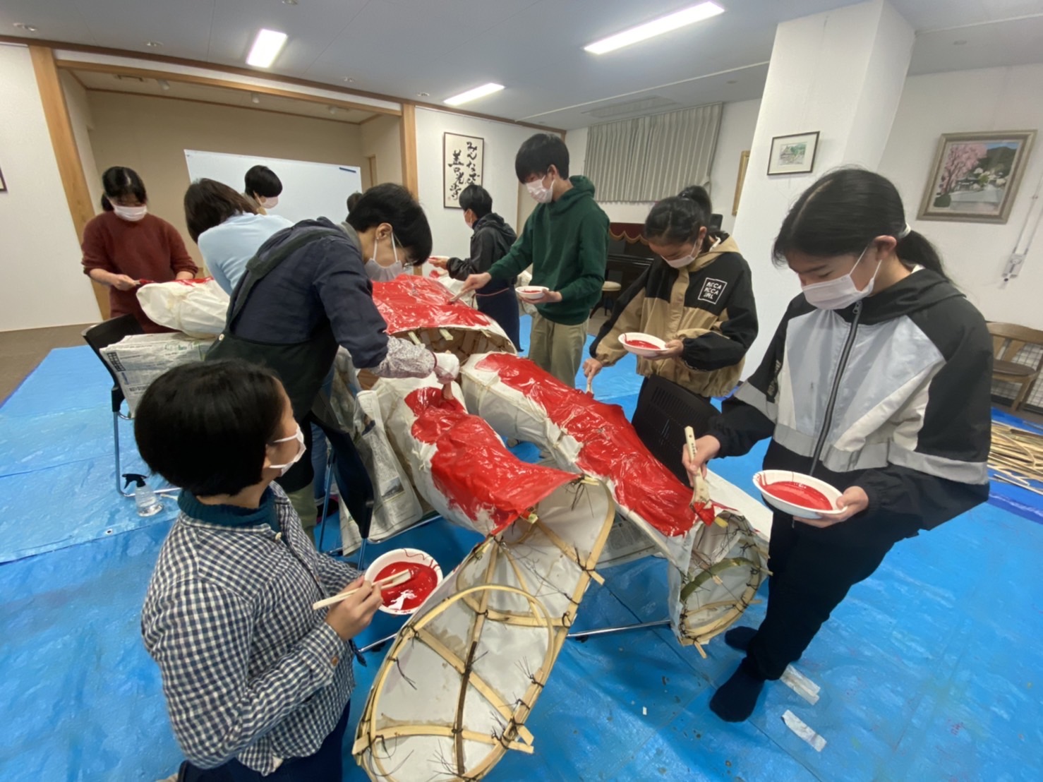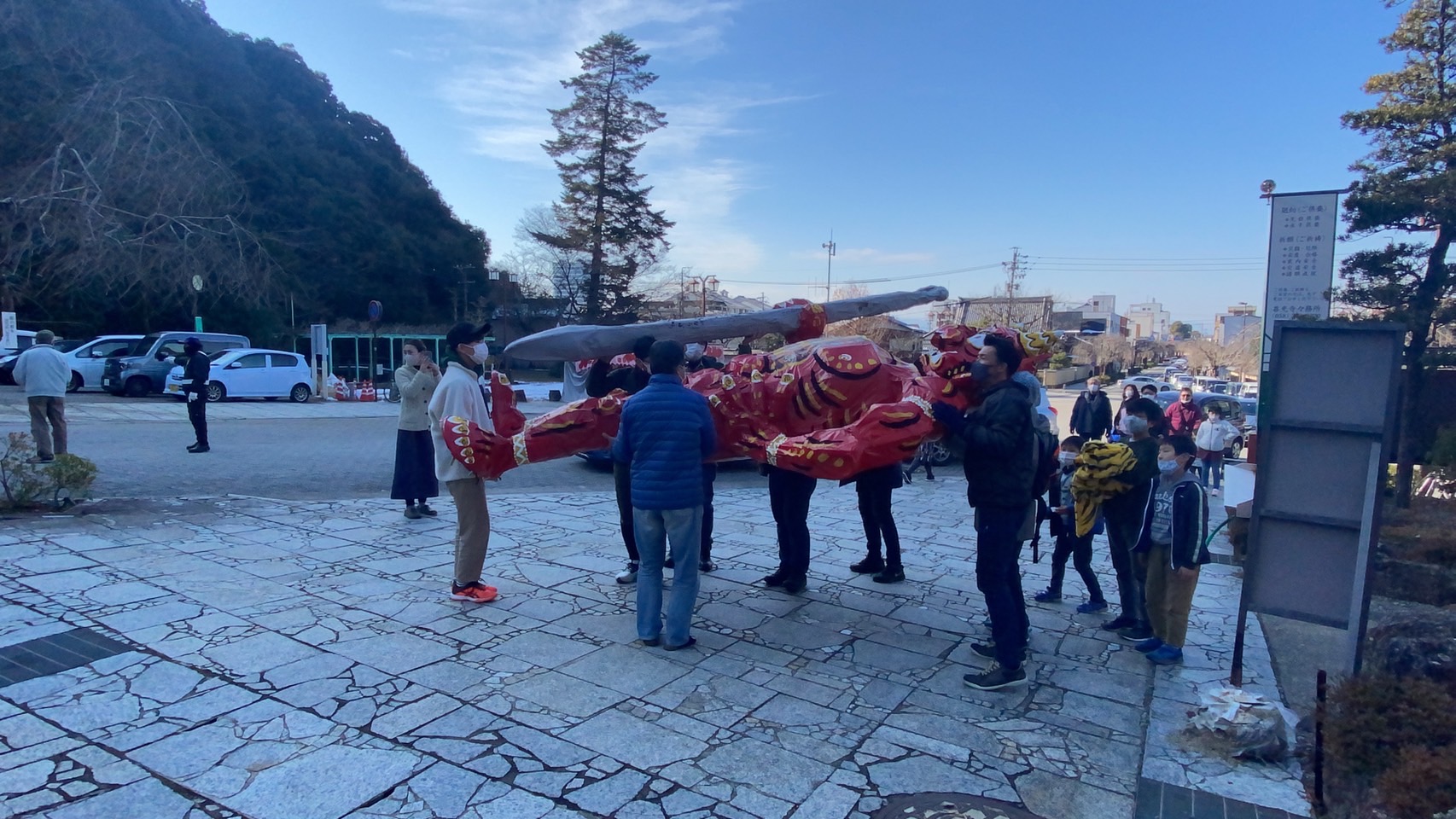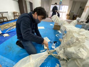 善光寺さんの鬼は、有志の方が集まって長良の竹と美濃和紙から骨組みを作り、3日間かけて作られているそうです。