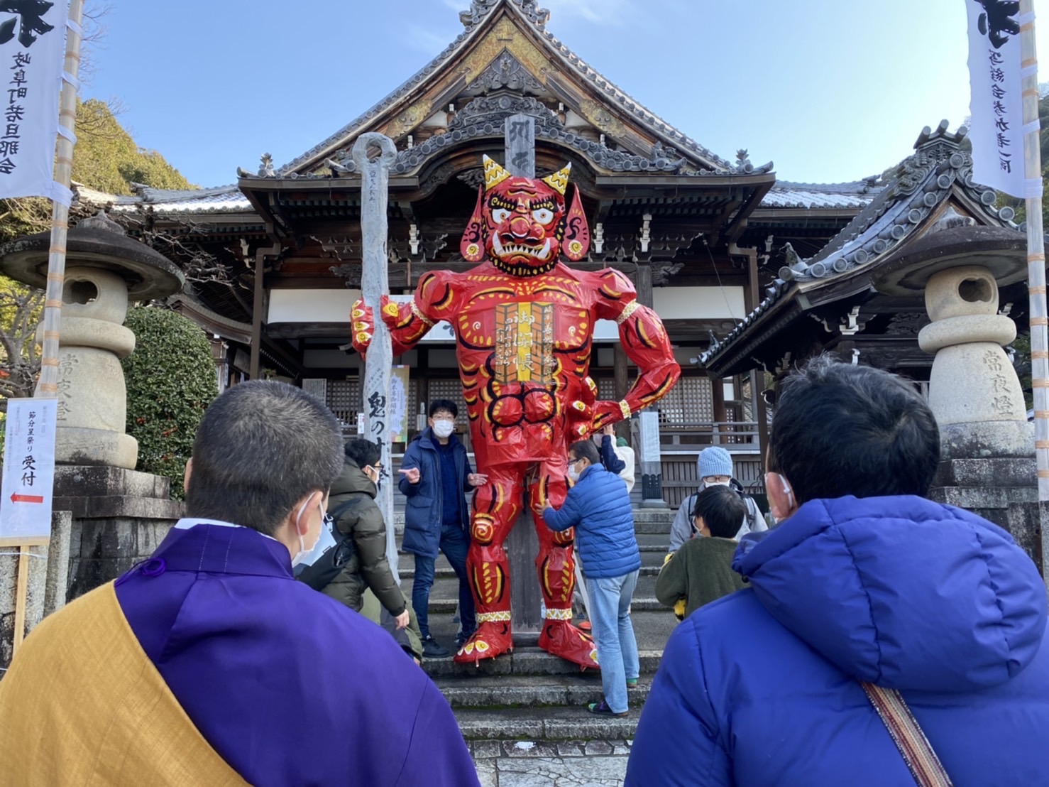 そして伊奈波神社のふもとにある善光寺の赤鬼さんのお顔を見てきます。今や赤鬼は節分の風物詩となっています。